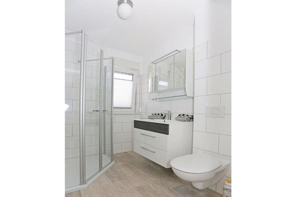 Ferielejligheden "Am Westkaap 3F" ligger på øverste etage og inviterer dig til en afslappende ferie på den smukke Nordsøø Borkum. Lejligheden er centralt beliggende mellem det nye fyrtårn og promenaden, i den bilfri zone, og stranden ligger kun 100 meter væk. Den åbne og lyse stue og spisestue har en komfortabel lædersofa, et tilstødende spisebord og et moderne, veludstyret køkken, perfekt til fælles madlavning. Et soveværelse med dobbeltseng og et badeværelse med bruser er også placeret på øverste etage. Den smukke, store tagterrasse er også placeret her. Fra den åbne stue fører en trappe til loftet, hvor du finder et soveværelse med dobbeltseng, et badeværelse med bruser og en møbleret balkon. Hele lejligheden er udstyret med elektriske persienner, kombineret vaskemaskine/tørretumbler og gulvvarme.