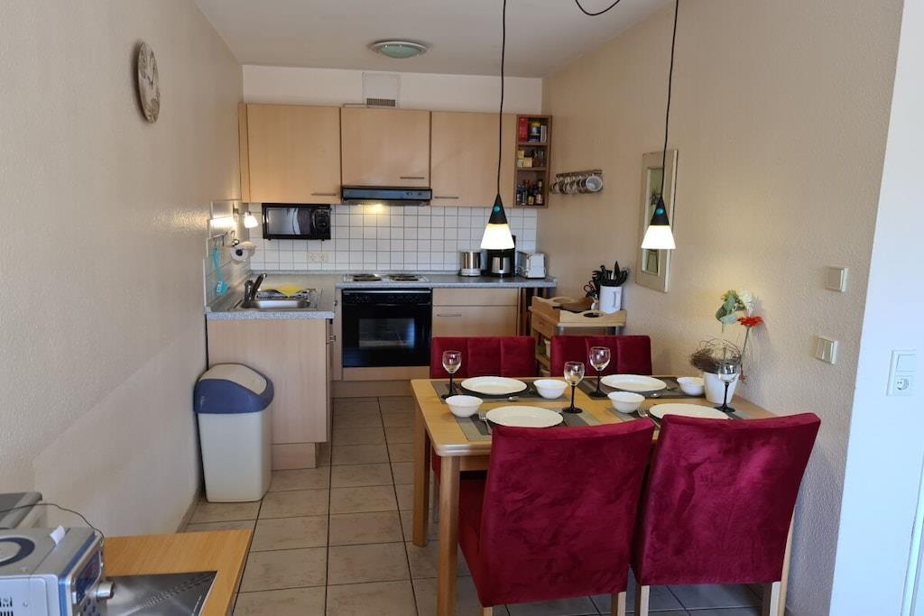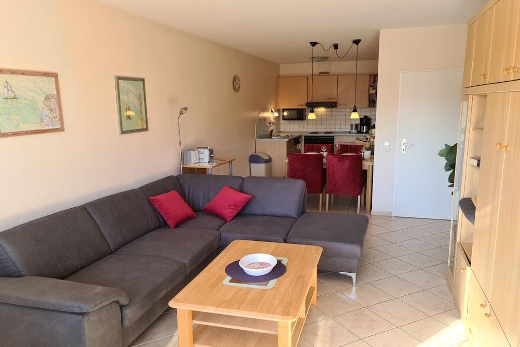 Die 55m² große Ferienwohnung ist Bestandteil des Hauses "Möwennest 2", einer schönen Ferienwohnanlage direkt im Zentrum Borkums. Ihre Ferienwohnung hat ein Schlafzimmer mit einem 1,60m x 2,00m und einem 0,90m x 2,00m Bett (zusätzlich zum Schrankbett im Wohnzimmer 1,80m x 2,00 m), ein Wohnzimmer mit Eckcouch, Fernseher etc. sowie eine Küche, die von der Spülmaschine bis zur Mikrowelle mit allem ausgestattet ist, was den Urlaub angenehm macht. Das Badezimmer ist mit einer hochwertigen Dusche mit niedrigem Einstieg, sowie Fußbodenheizung ausgestattet. Abgerundet wird die Wohnung durch einen nach hinten gelegenen Balkon. Ein Parkplatz befindet sich am Haus, ein Fahrrad- sowie ein Waschkeller mit Münzwaschmaschine sind ebenfalls vorhanden.