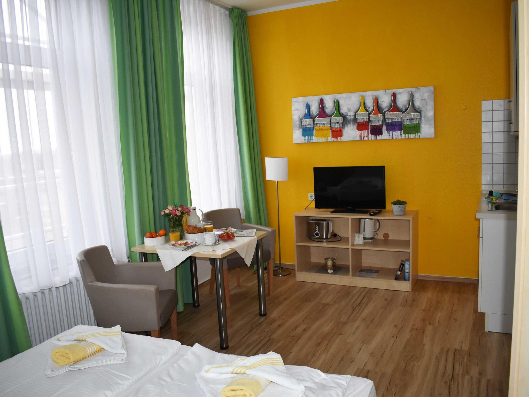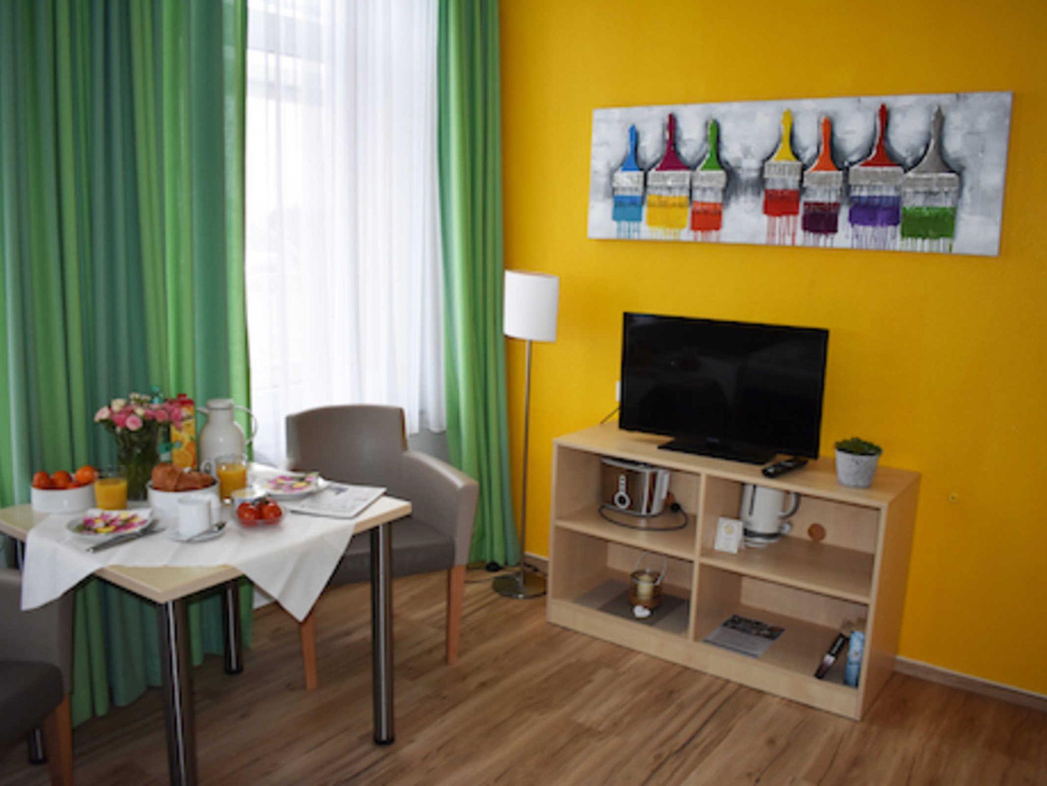 Apartment für 1-2 Personen mit kombiniertem Wohn- und Schlafraum.