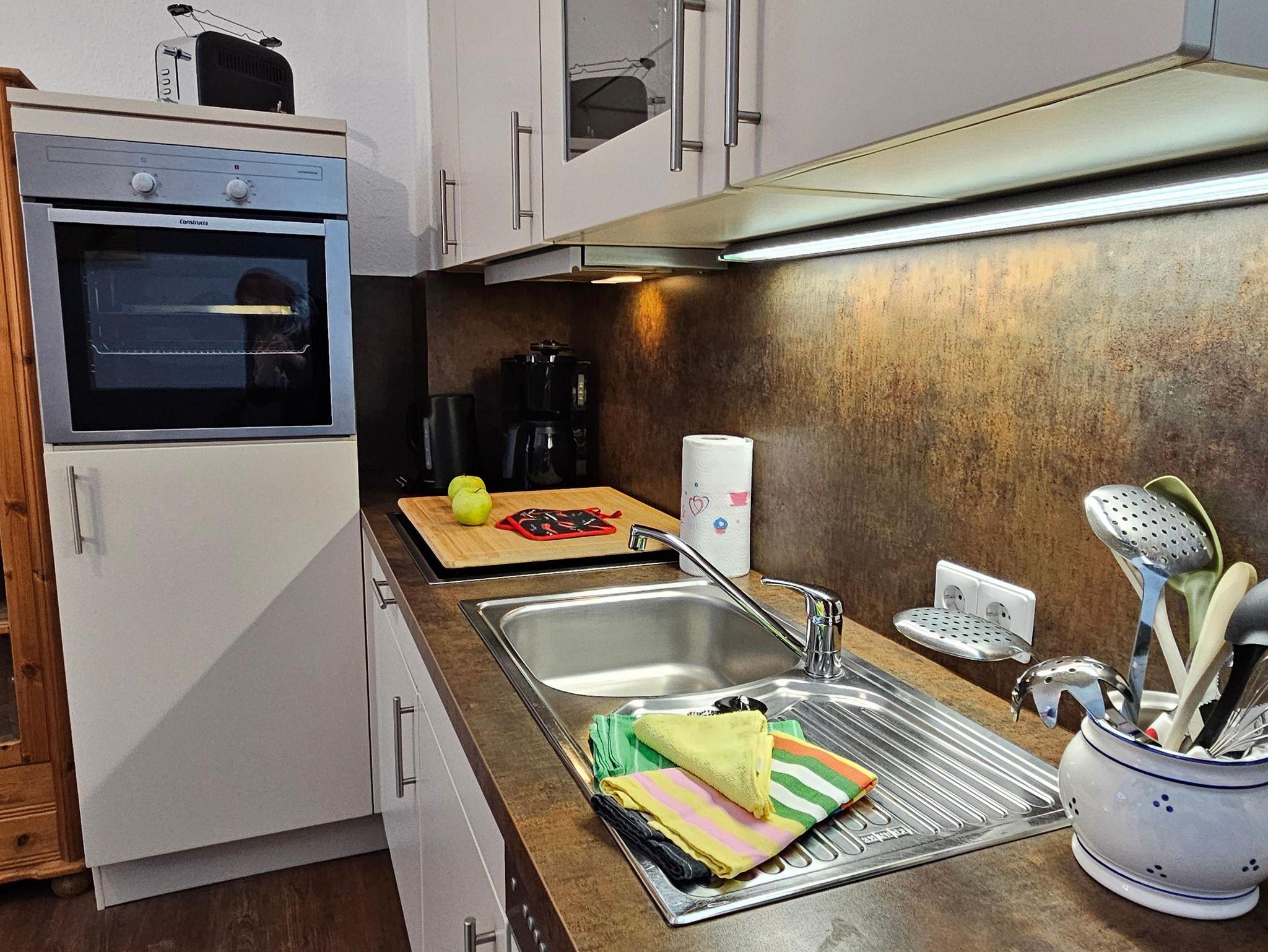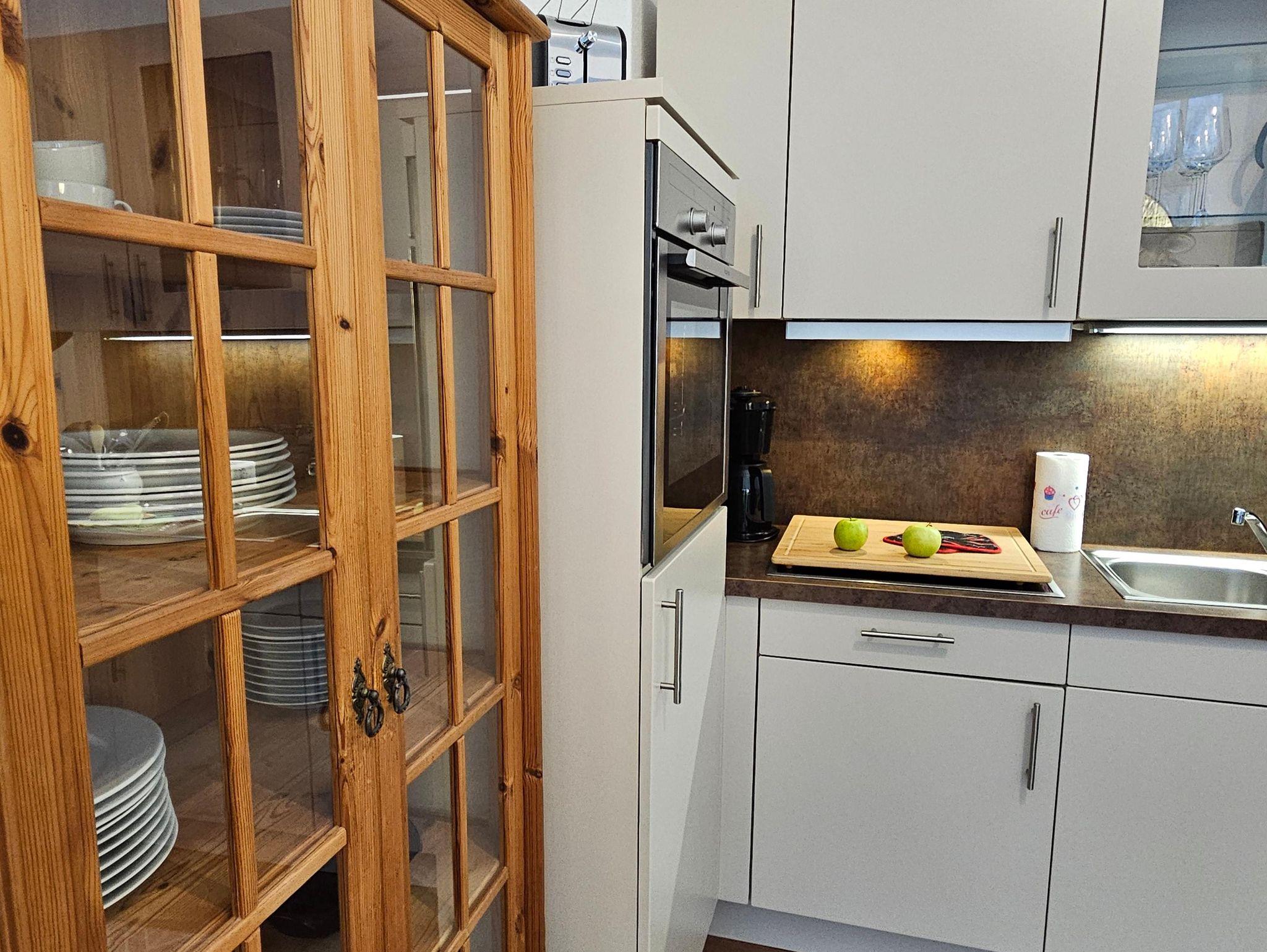 - Küchenzeile mit Kaffeemaschine, Wasserkocher, Toaster, Kühlschrank, Backofen Spülmaschine