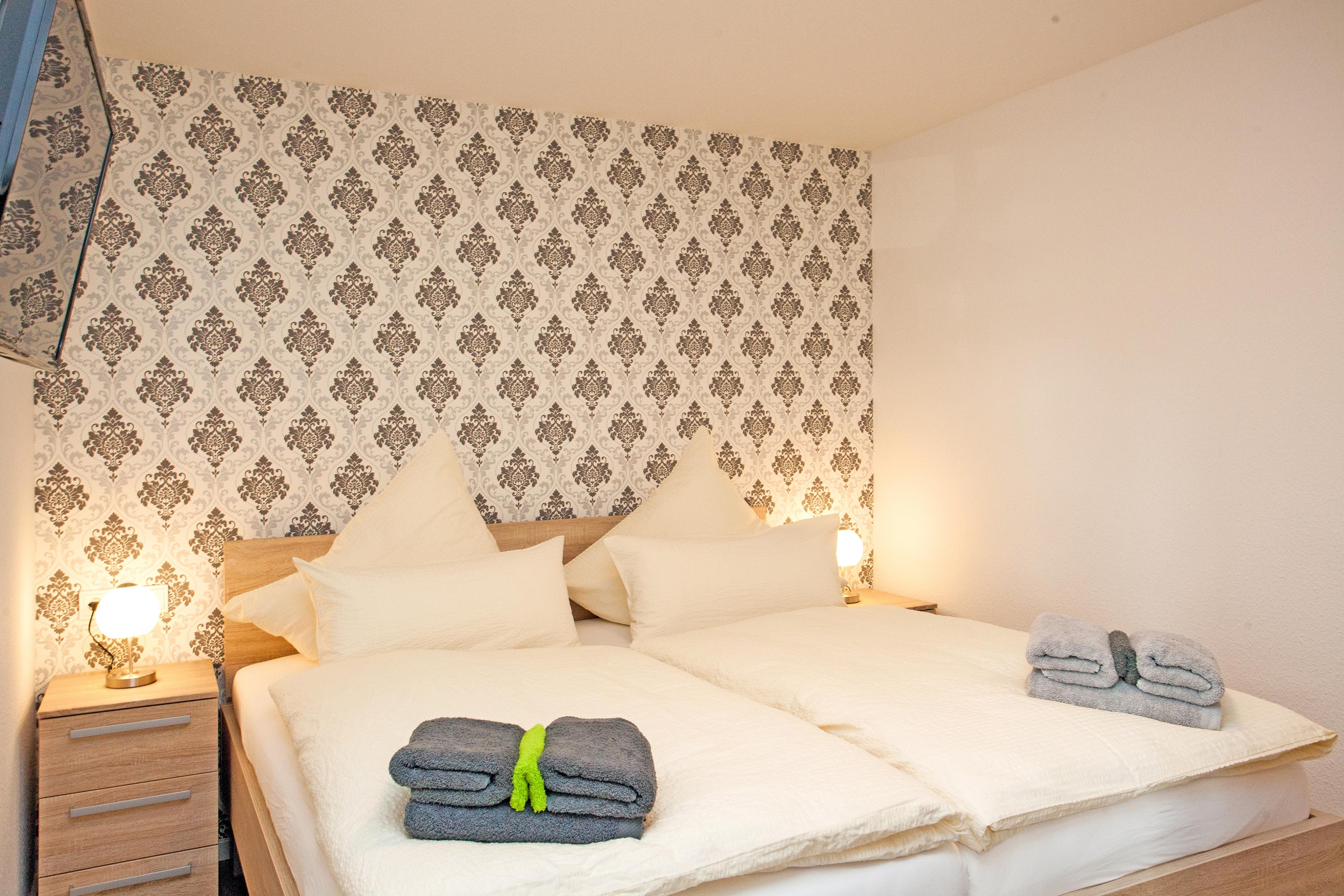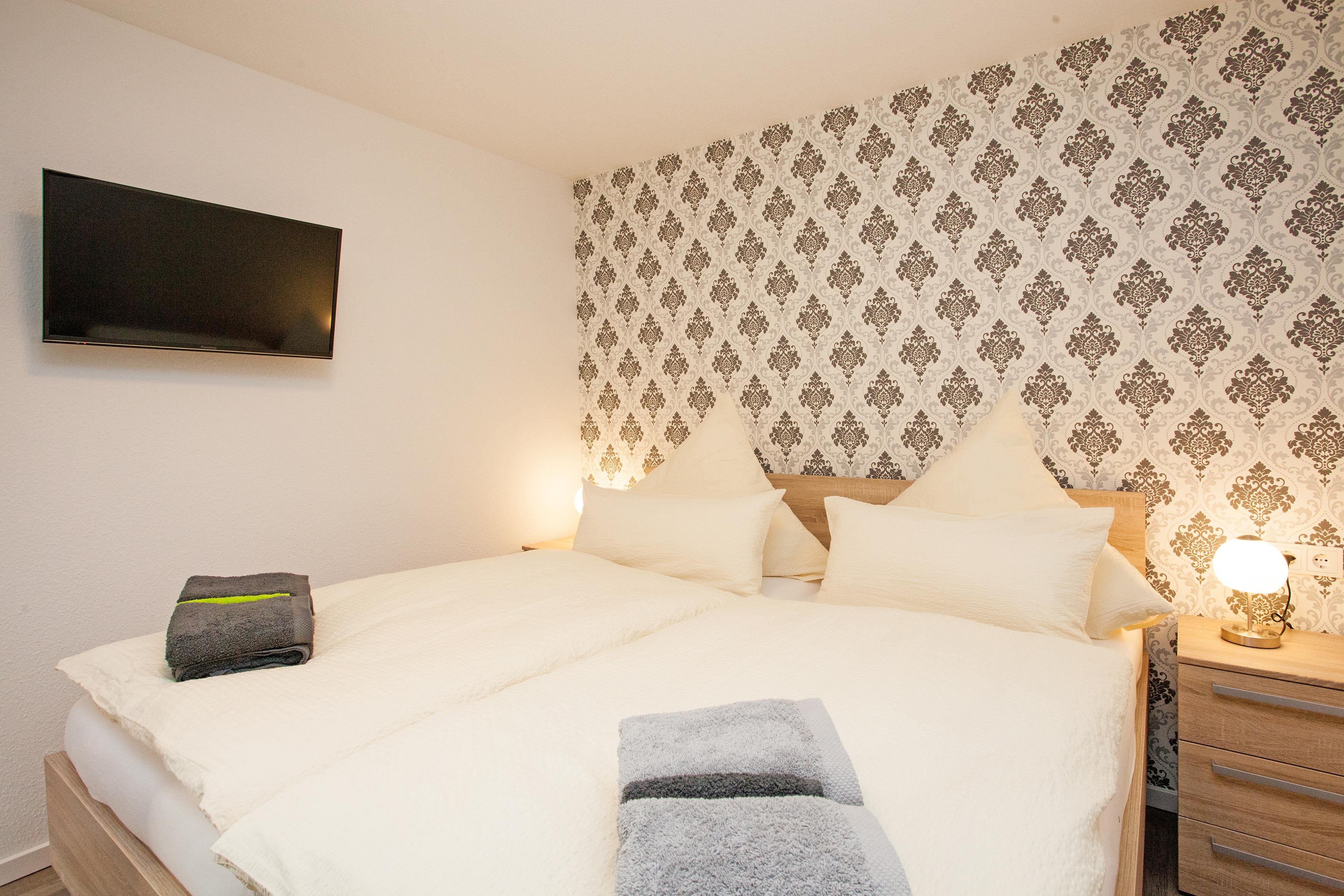 1 Schlafzimmer mit Doppelbett und Kabel-TV