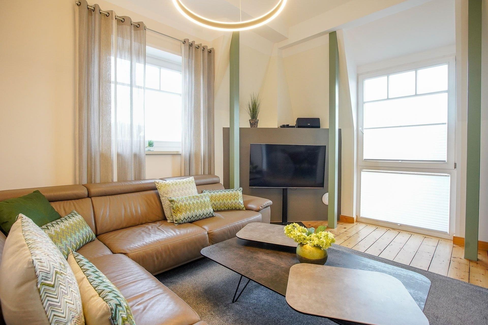 Die moderne Ferienwohnung Lieselotte in behaglicher Villenatmosphäre, bietet Ihnen für bis zu sechs Personen, genügend Platz auf 120 m² Wohngröße. Von der 25 m² großen Dachterrasse aus haben Sie einen zauberhaften Ausblick über die Landschaft bis zum alten Leuchtturm.
