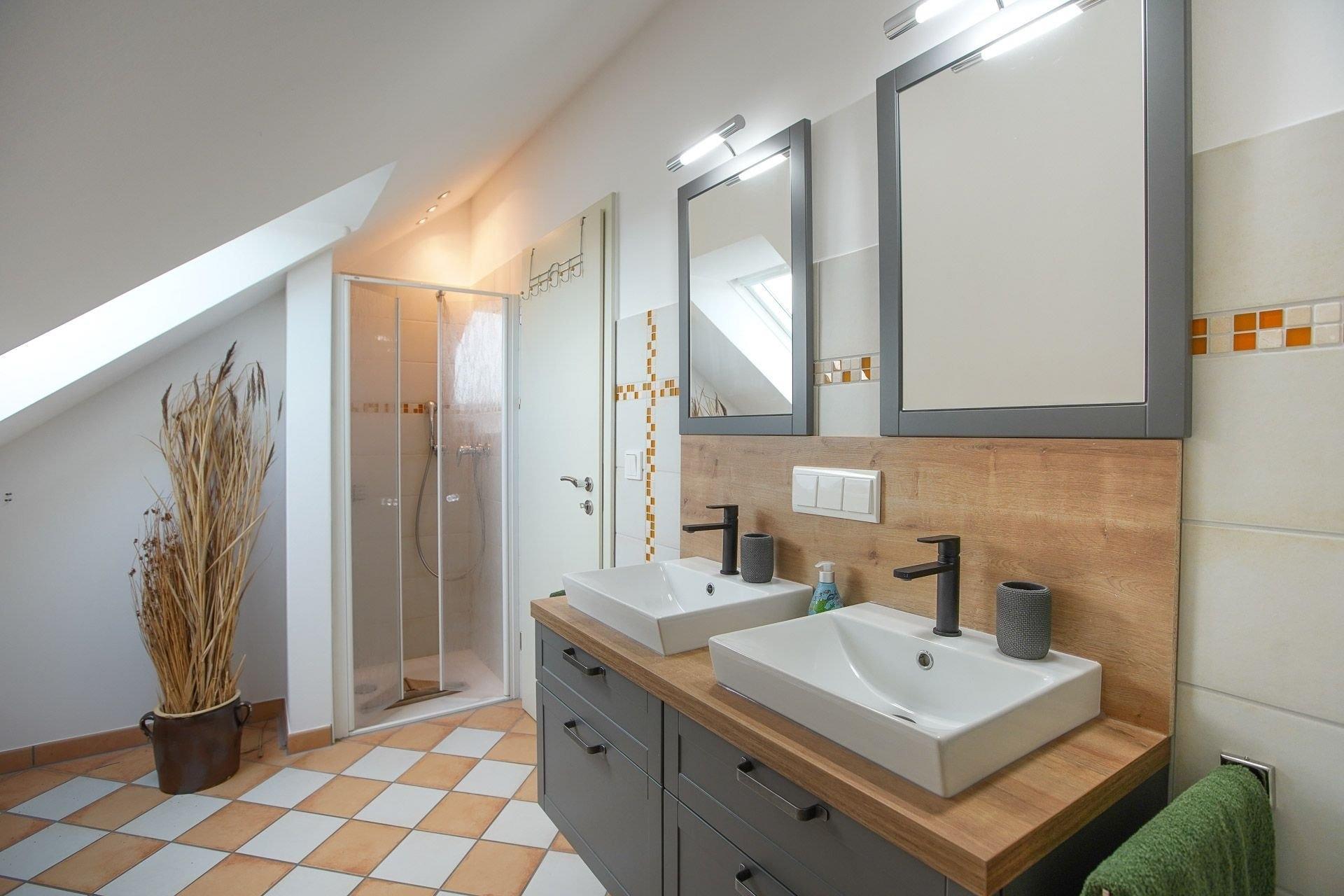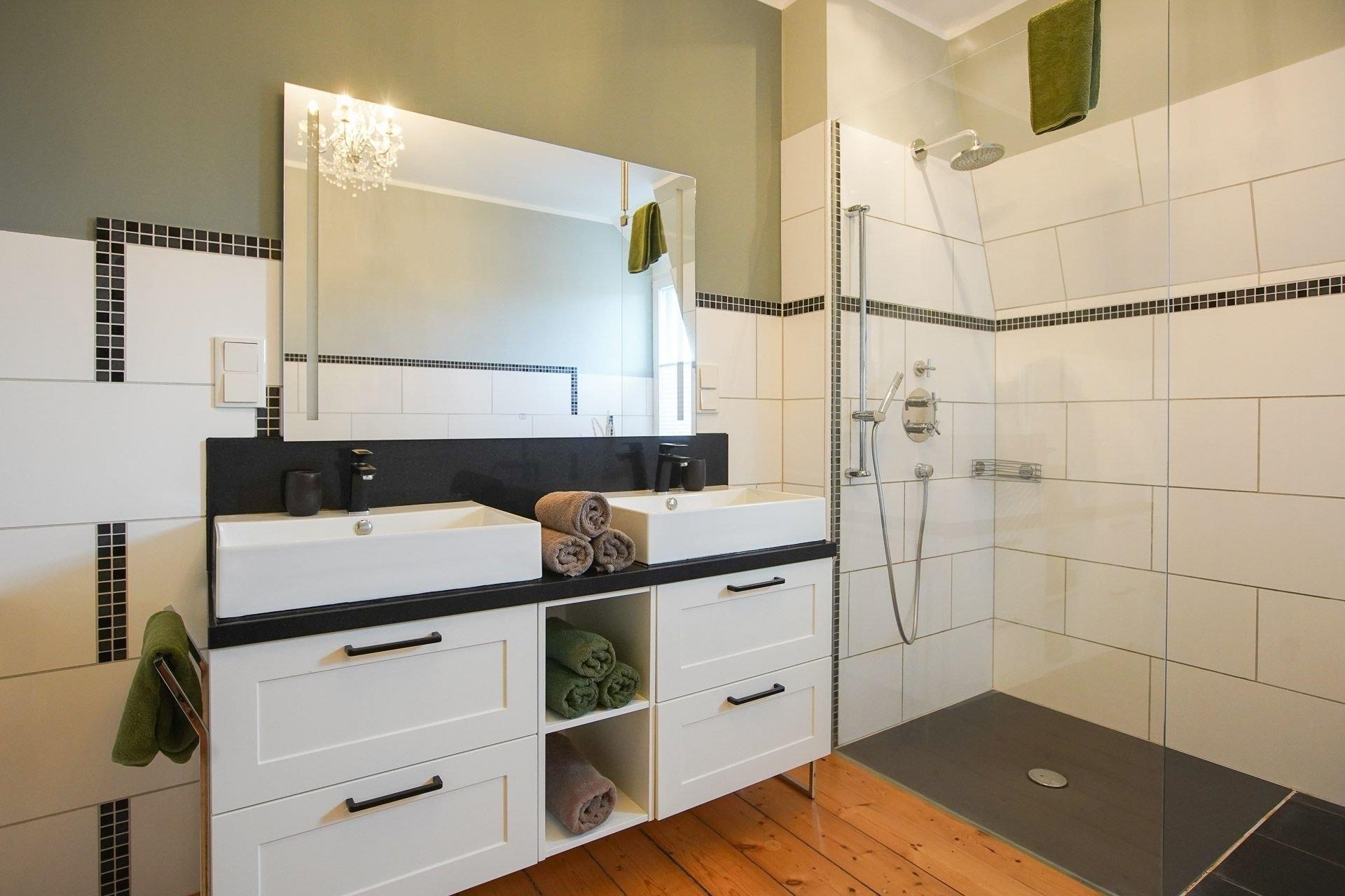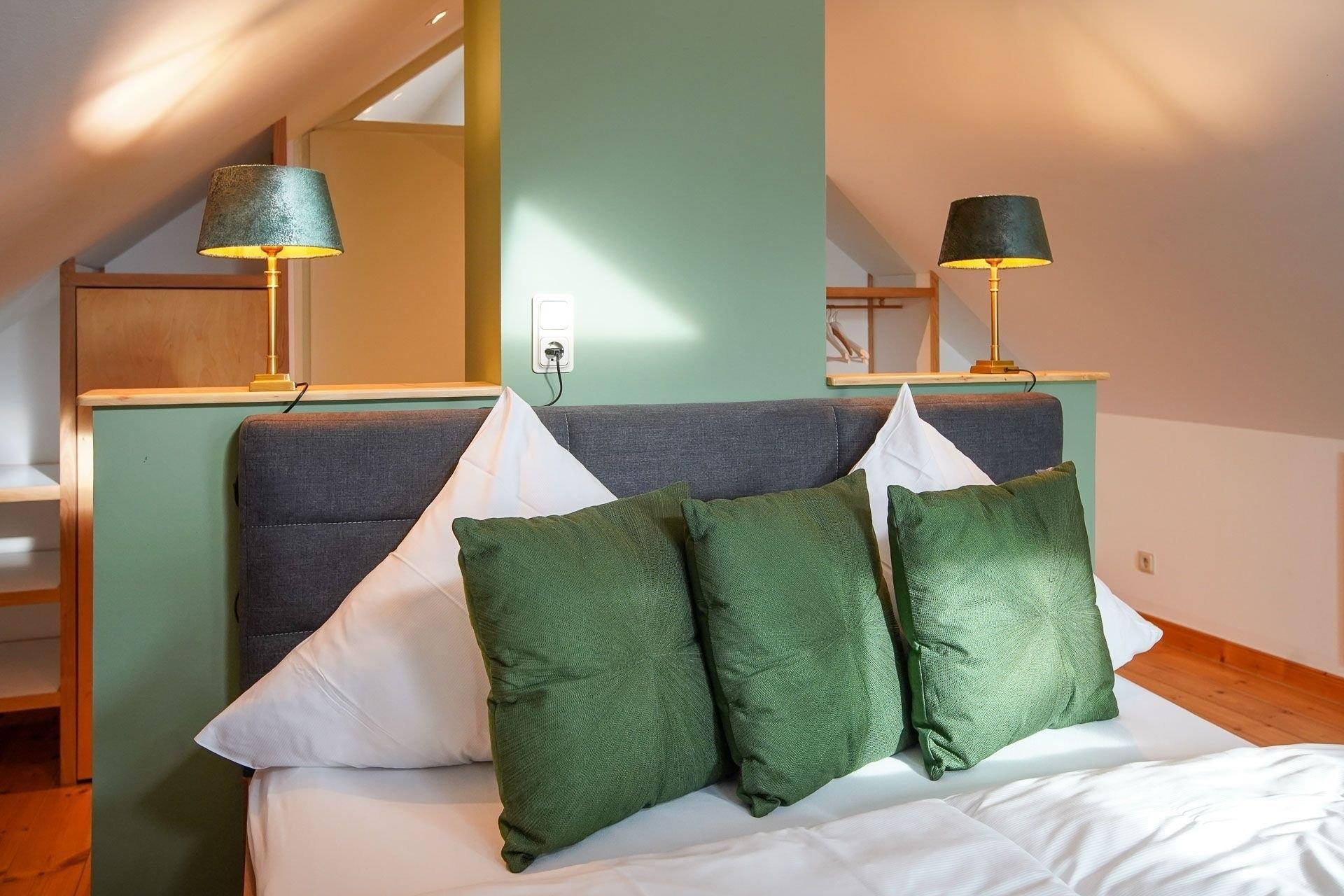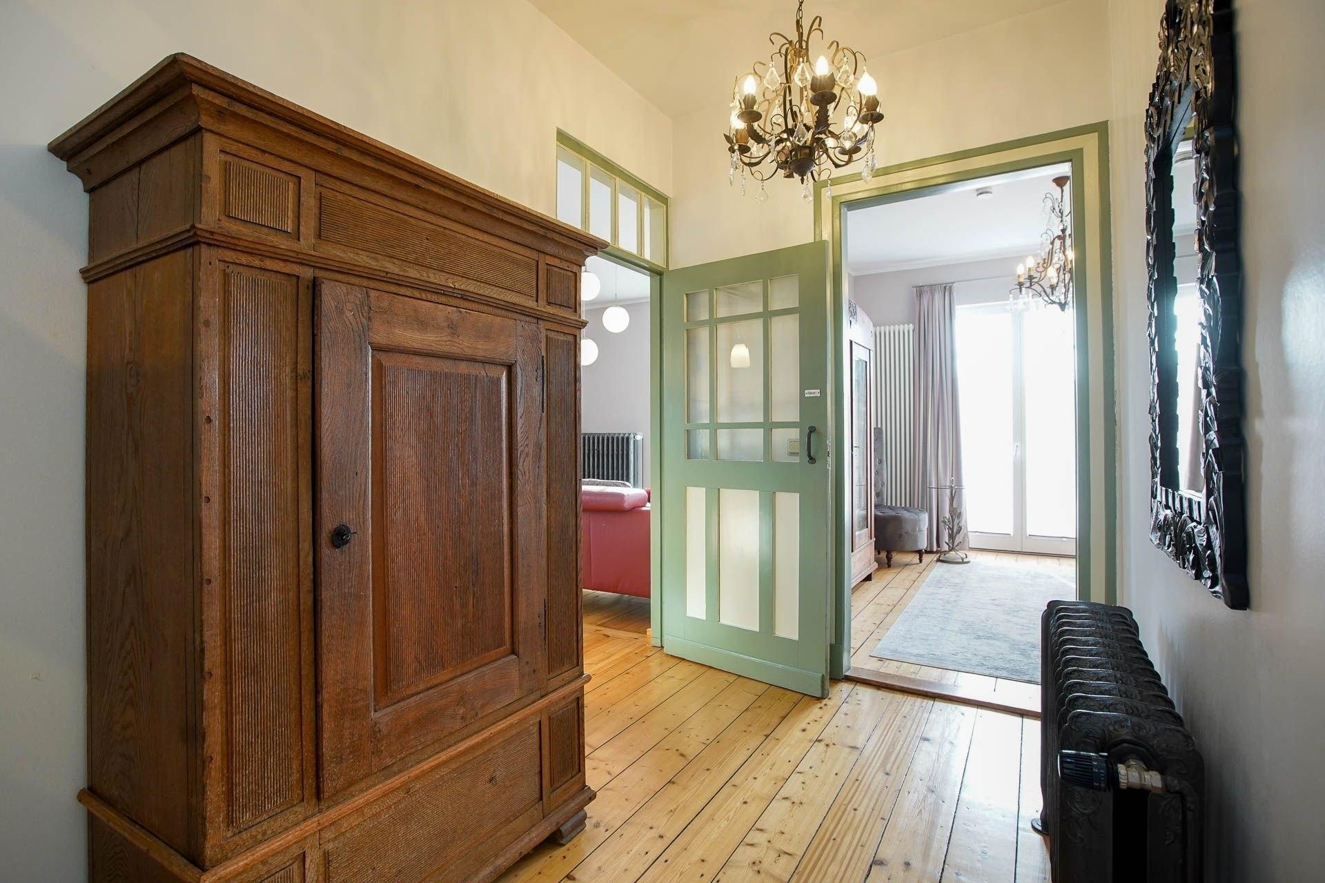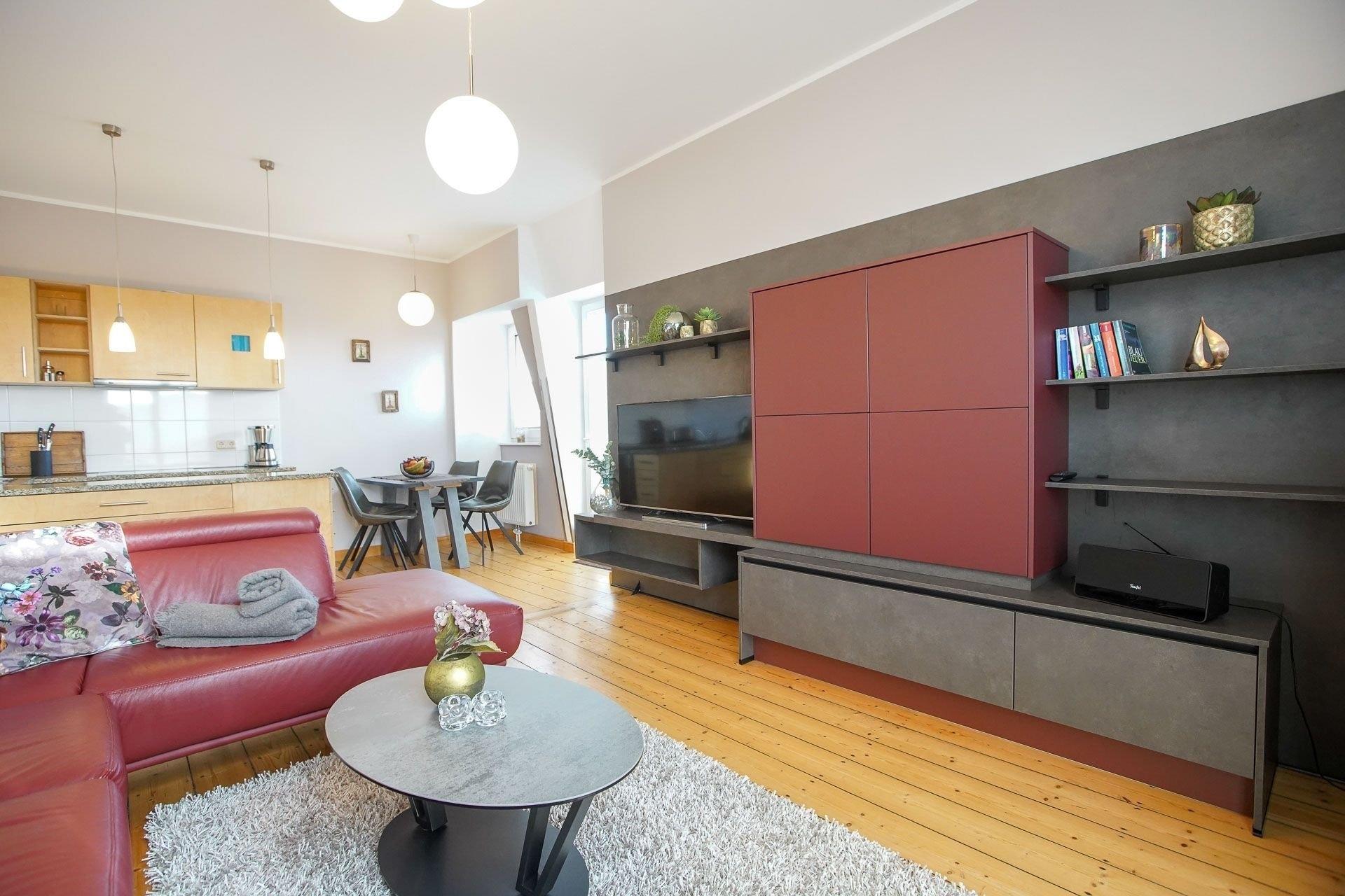 Die liebevolle Einrichtung ist ein Mix aus Modernem und Antiquitäten und sorgt für ein herrliches Ambiente. Im unteren Bereich der Maisonettenwohnung erwartet Sie der große Wohnbereich mit Sofa, TV und Blue-Ray-Player zum entspannen. Außerdem die Küche mit Geschirrspüler und Ceran-Kochfeld sowie ein Schlafzimmer mit King-Size-Doppelbett und das Bad mit freistehender Badewanne, Dusche und WC.