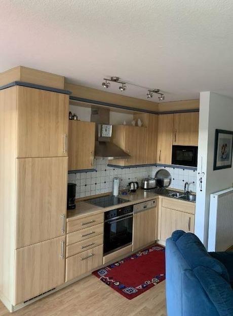 • komplett eingerichteter, offener Küchenbereich mit Kochfeld und Backofen, Spülmaschine, Kühlschrank, Mikrowelle, Kaffeemaschine, Gefrierbox, Toaster, uvm