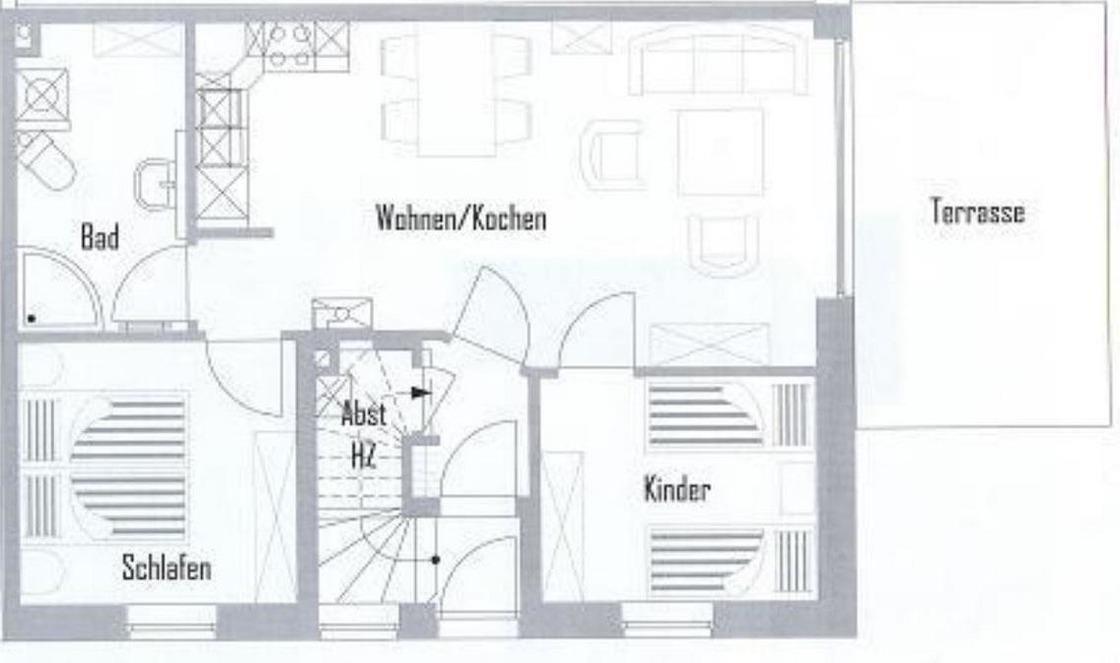 Die Ferienwohnung bietet großzügigen Raum für erholsame Tage. Mit zwei Schlafzimmern, einem mit einem Doppelbett und einem weiteren mit zwei Einzelbetten, findet jeder seinen optimalen Schlafplatz. Die moderne Küchenzeile ist mit einem Elektro-/Gasherd, einem Backofen, einem Kühlschrank und einer Kaffeemaschine ausgestattet, ideal für die Zubereitung von leckeren Mahlzeiten. Ein Duschbad und ein Gäste-WC sorgen für zusätzlichen Komfort. Der Wohnbereich lädt mit einem Fernseher und kostenlosem WLAN zum Entspannen ein. Eine Waschmaschine rundet das praktische Angebot ab. Diese Ferienwohnung bietet somit alles, was für einen entspannten Aufenthalt benötigt wird.
