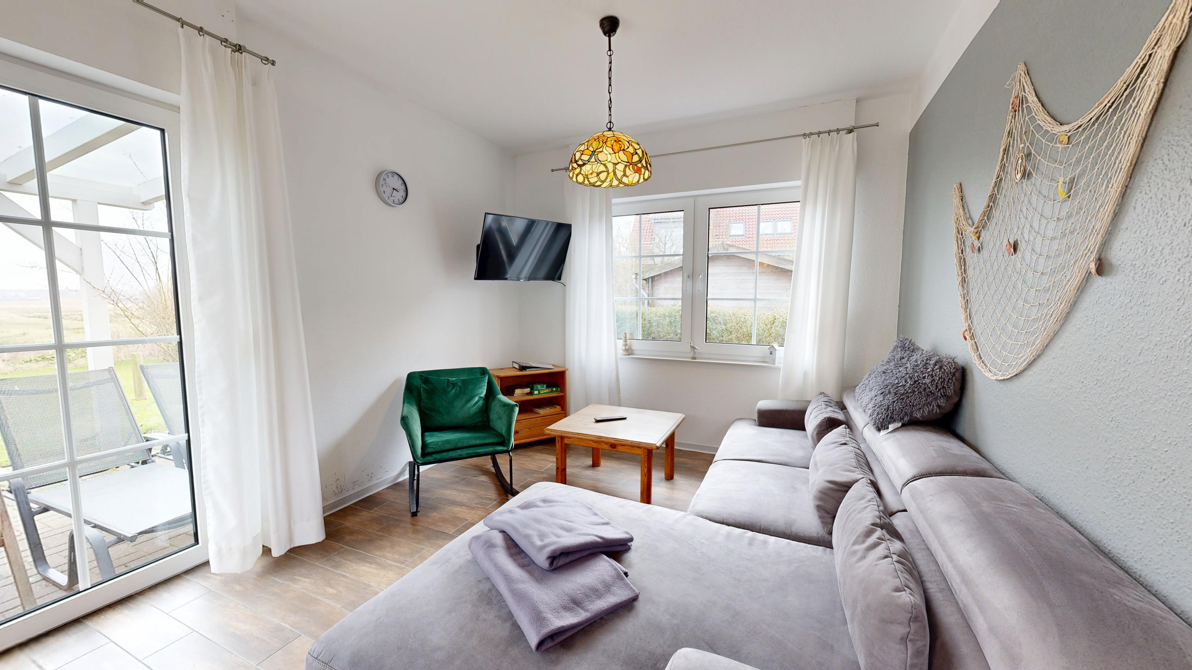 Familienfreundliches Ferienhaus Jo auf Borkum! Sie wohnen auf 100m² mit 4 Schlafzimmern, Küche, überdachte Terrasse und Garten.