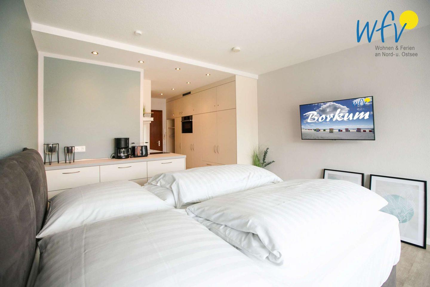 Stilvoll und komfortabel - so wohnen Sie in unserer Ferienwohnung "Inseloase" im "Ferienhaus Seeblick"! Sie ist ideal für romantische Tage zu zweit. In bester Lage direkt an der Borkumer Strandpromenade!