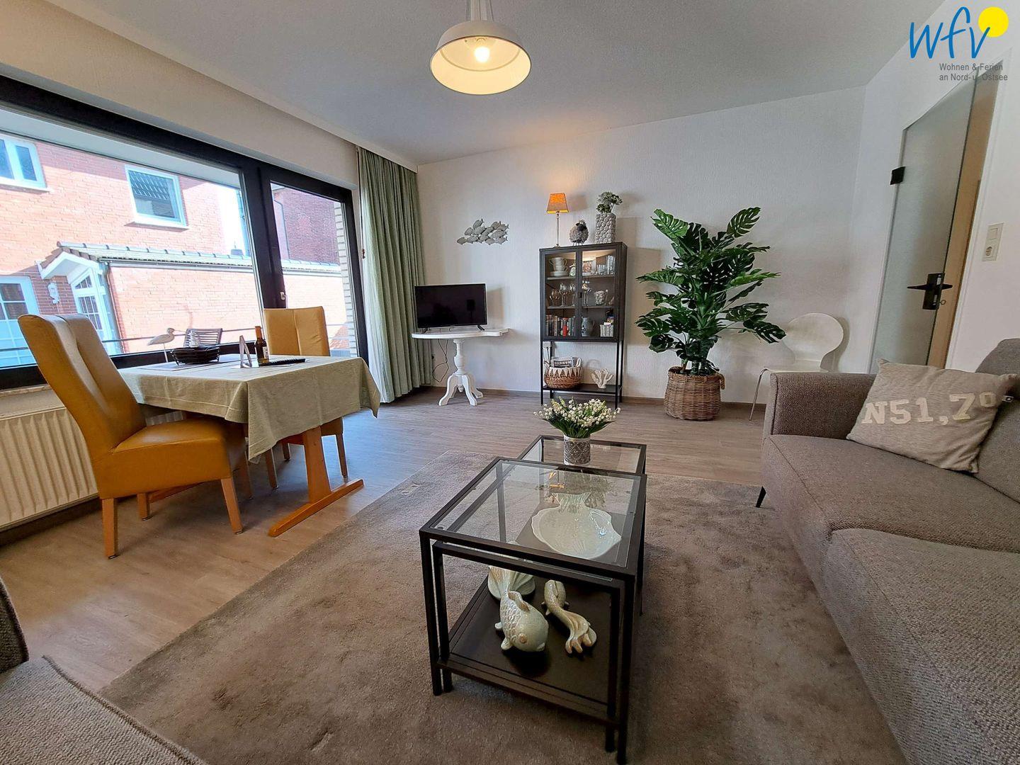 Genießen Sie einen erholsamen Urlaub auf Borkum! Unsere Ferienwohnung "Gartenblick" mit separatem Schlafzimmer, großzügigem Wohnraum und sonnigem Balkon lädt zu entspannten Tagen ein.