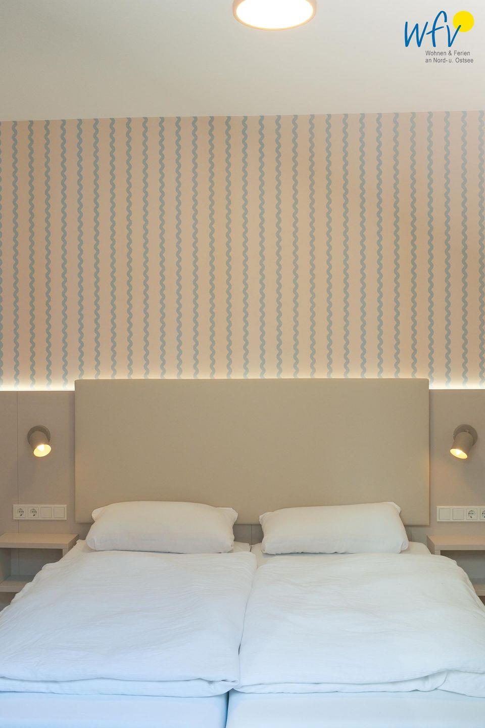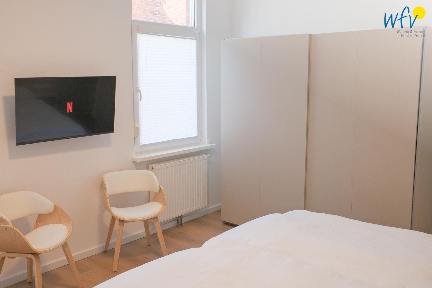 Ausruhen, erholen und entspannen... genau das ist Urlaub! Zwei separate Schlafzimmer versprechen eine angenehme Nachtruhe. Beide sind mit jeweils einem Doppelbett ausgestattet (200 x 200 cm bzw. 180 x 200 cm) sowie mit einem geräumigen Kleiderschrank und einem modernen SmartTV. Die Schlafcouch im Wohnraum kann bequem zu einem Bett umfunktioniert werden (140 x 200 cm) und ist für einen Erwachsenen und ein Kind oder zwei Kinder geeignet.