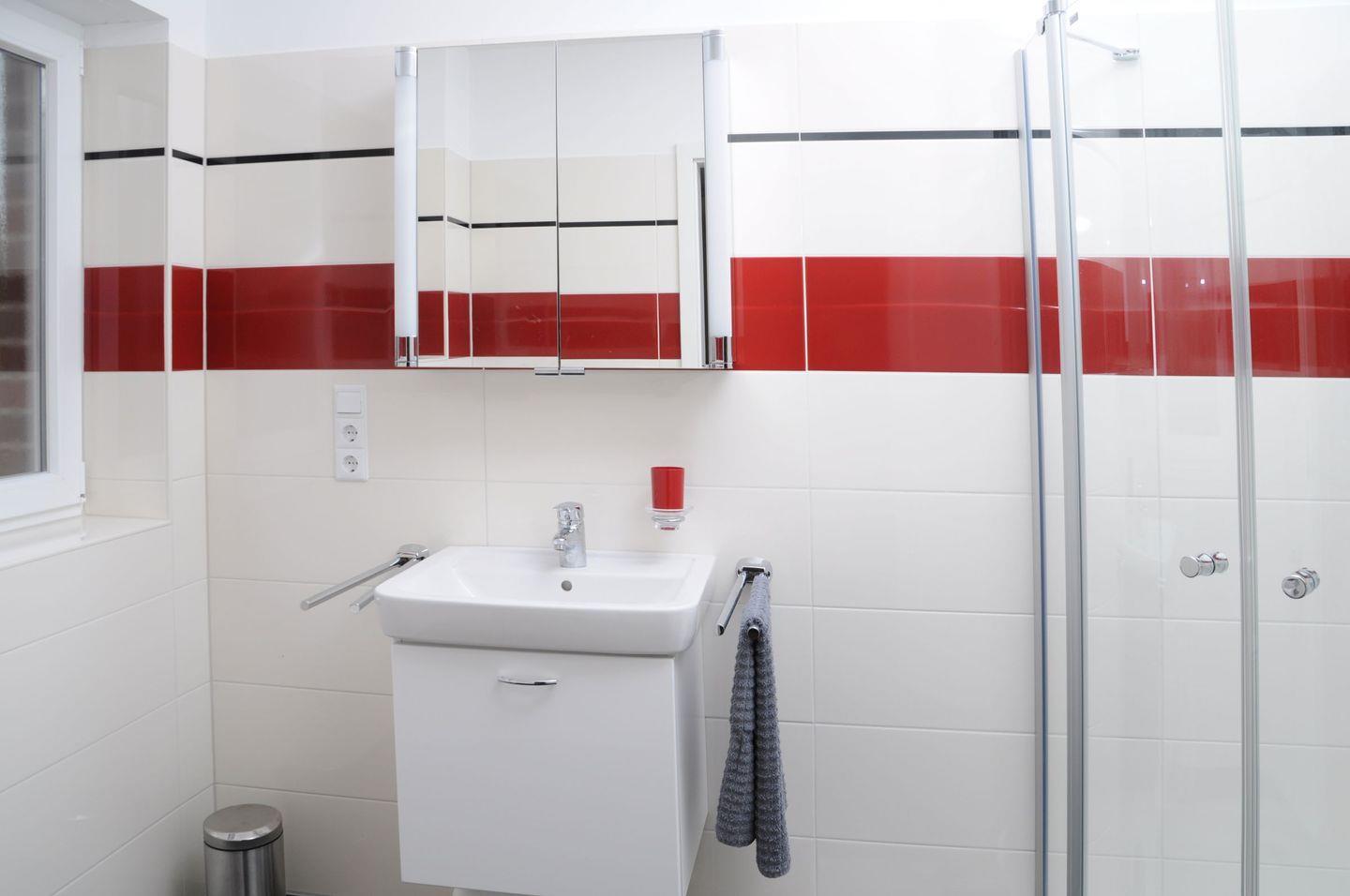 Die zwei geschmackvoll eingerichteten Schlafzimmer bieten exzellente Schlafmöglichkeiten. Sie sind mit Vinylboden ausgelegt und strahlen eine einladende Atmosphäre aus, die zum Erholen einlädt. Ein modernes Badezimmer mit Dusche und Wanne sowie ein zusätzliches Gäste-WC sorgen für den notwendigen Komfort. Für Familien mit kleinen Kindern stehen ein Kinderhochstuhl und ein Babybett zur Verfügung.