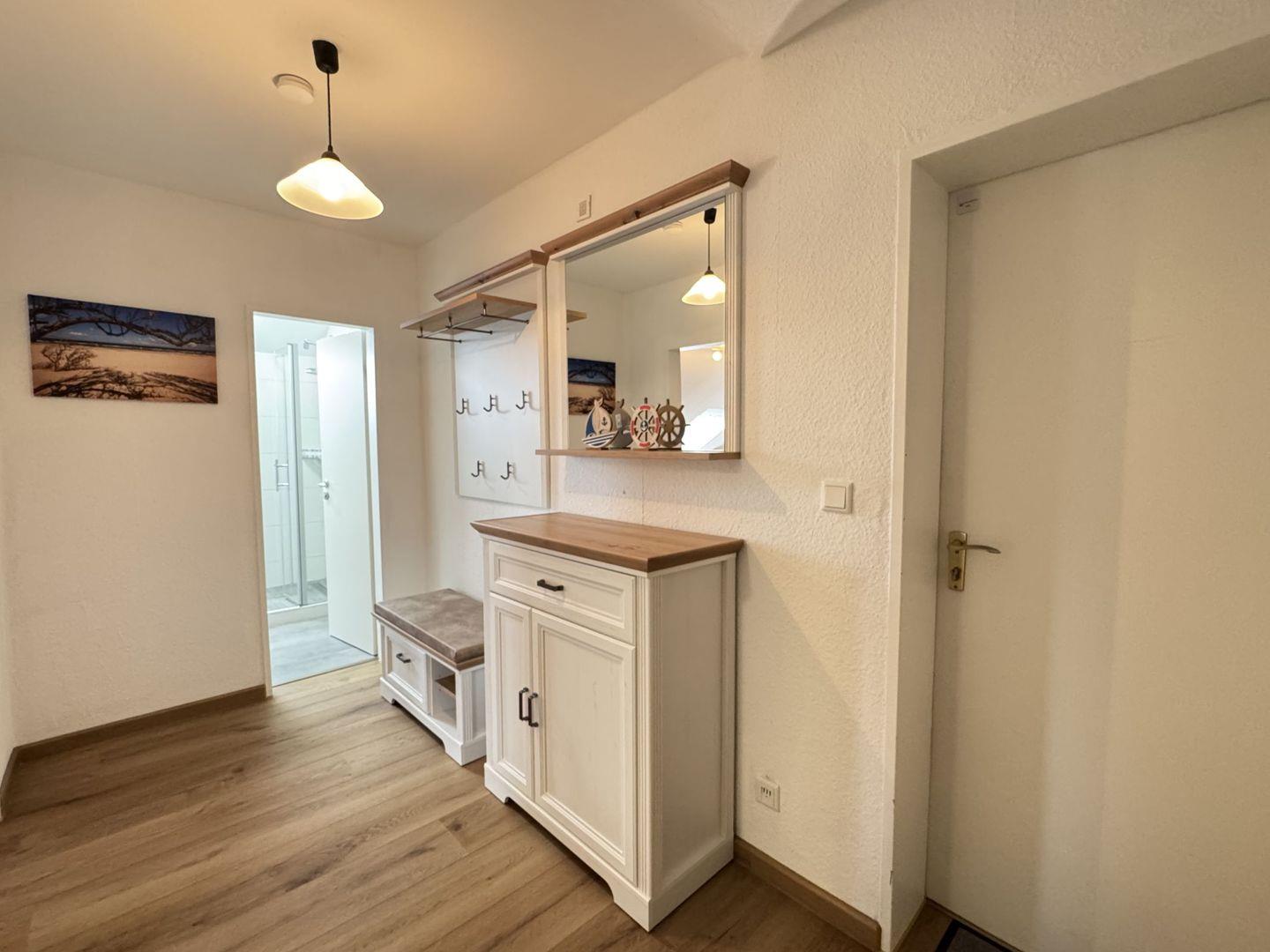 Das Badezimmer in der Dünenkoje Ost ist funktional und komfortabel und ist mit einer Dusche ausgestattet. Ein Haartrockner, Kosmetikspiegel und weitere Annehmlichkeiten stehen Ihnen ebenfalls zur Verfügung. Frische Handtücher und Bettwäsche sind inklusive, sodass Sie Ihren Aufenthalt sofort genießen können.