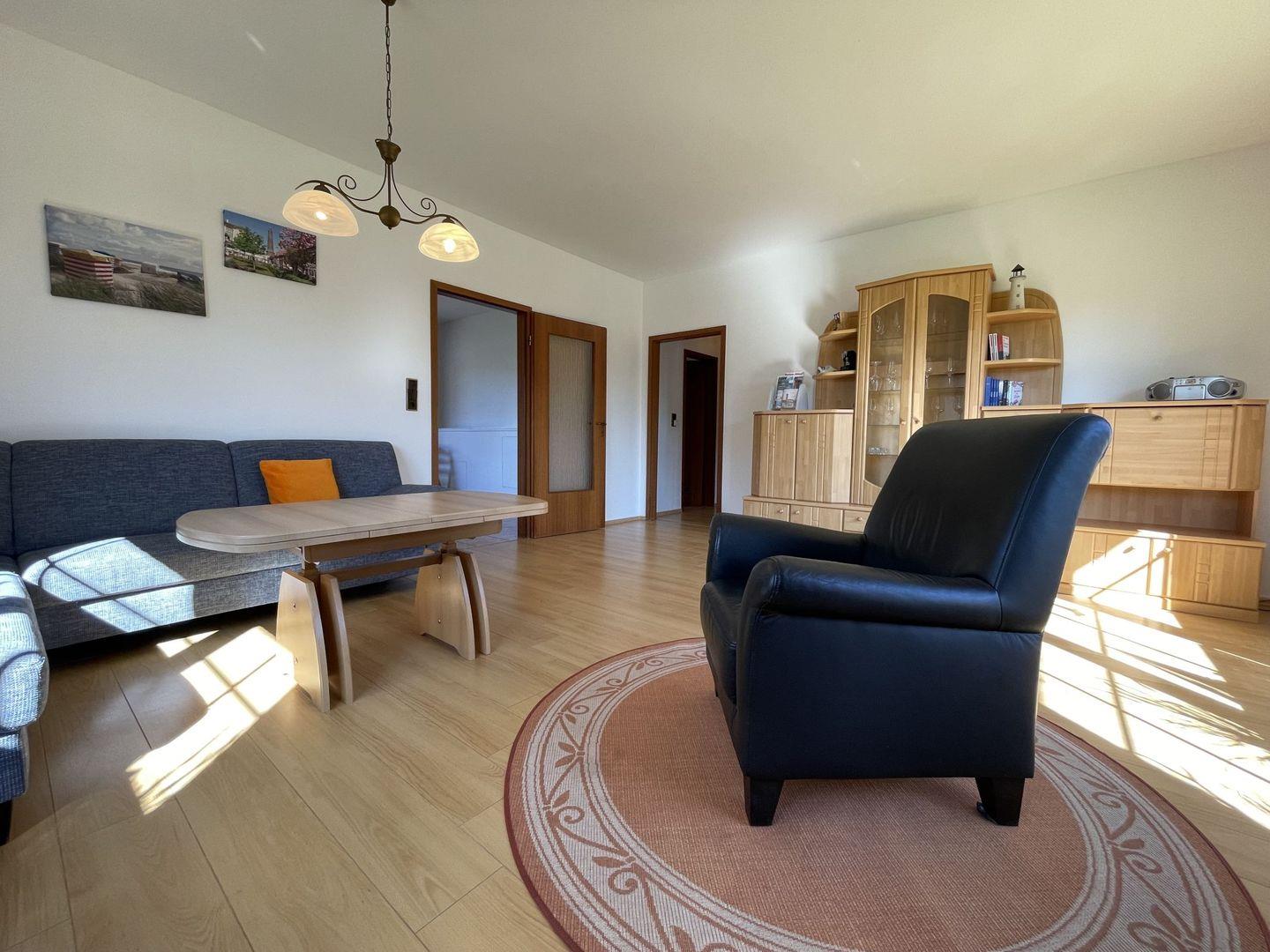 Die Unterkunft präsentiert sich mit zwei einladenden Schlafzimmern, die jeweils mit Vinylboden ausgestattet sind und die Gemütlichkeit unterstreichen. Das großzügige Wohnzimmer bietet eine Sofaecke, einen Essbereich und eine moderne Unterhaltungstechnik mit TV und WLAN, sodass Sie sich auch während Ihres Aufenthalts wohlfühlen können. Für entspannte Abende stehen im Wohnbereich ein Sessel und ein Sofa bereit, die zum Verweilen einladen.