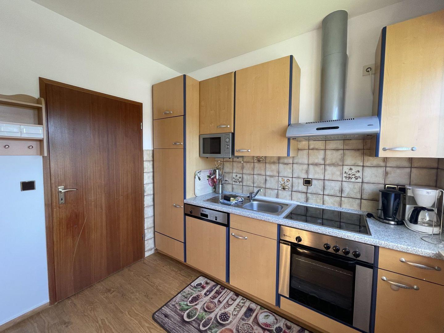 Die offene, gut ausgestattete Küche ist geschlossen und verfügt über alle Annehmlichkeiten, die Sie benötigen, um Ihre Mahlzeiten zuzubereiten. Dazu gehören ein Cerankochfeld, ein Gasbackofen, eine Spülmaschine, Mikrowelle, Toaster und Kaffeemaschine sowie ein Kühlschrank mit Gefrierfach. Hier können Sie nach einem erlebnisreichen Tag an der frischen Luft zusammen speisen und die Vorzüge der selbst zubereiteten Speisen genießen.