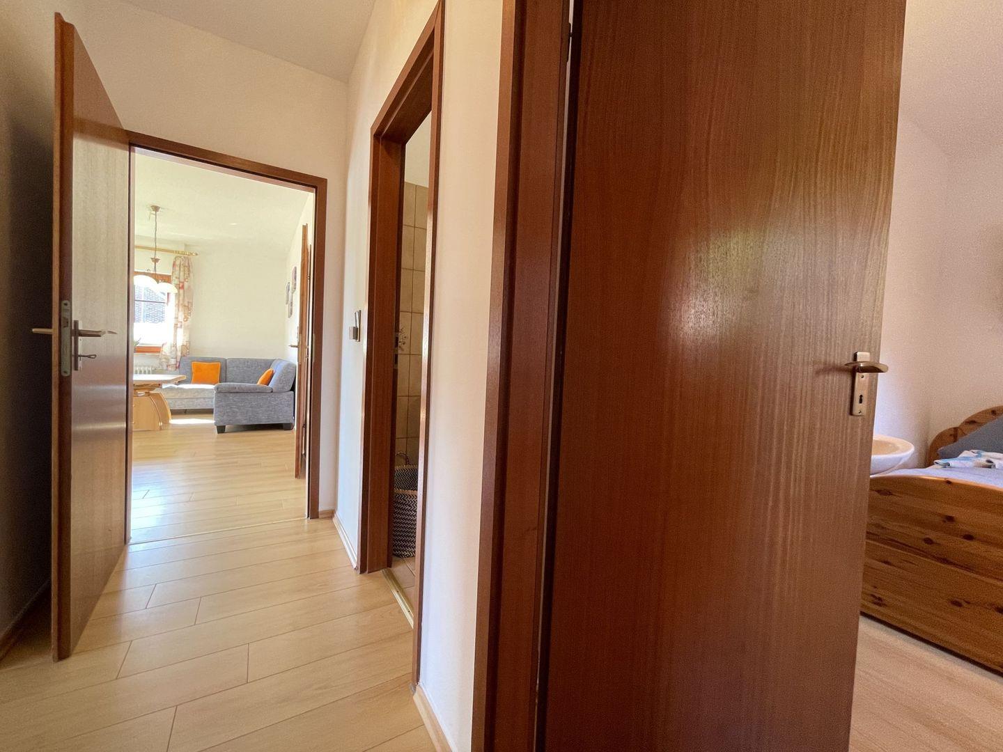 Das Badezimmer ist mit einer Badewanne, einem Waschbecken und einem WC ausgestattet und bietet den Komfort, den Sie sich wünschen. Ein Haartrockner sowie Spiegel sind ebenfalls vorhanden. Für die kleinsten Gäste steht ein Babybett bereit, sodass auch die Familien mit Kleinkindern herzlich willkommen sind.