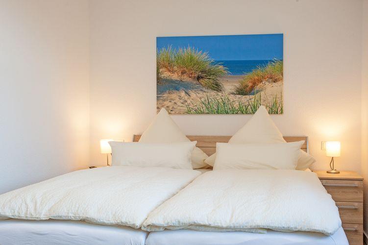 Sie erreichen die Wohnung im Obergeschoss?ganz bequem über eine große Treppe oder einen Fahrstuhl. Der offene Wohnraum mit integrierter Küche?bietet alles für einen schönen Brunch oder ein bequemes Abendessen zu zweit. Das Schlafzimmer ist mit Doppelbett, großem Kleiderschrank und TV-Gerät ausgestattet. Außerdem befindet sich in der gesamten Wohnung eine Fußbodenheizung. Für die kühleren Tage stehen Ihnen im Gebäude ein großzügiger Gemeinschaftssauna Bereich (gegen eine kleine Gebühr) sowie ein erholsamer Ruheraum zur Verfügung. Im Außenbereich gibt es Sitzmöglichkeiten mit Strandkörben, die von allen Gästen genutzt werden können.