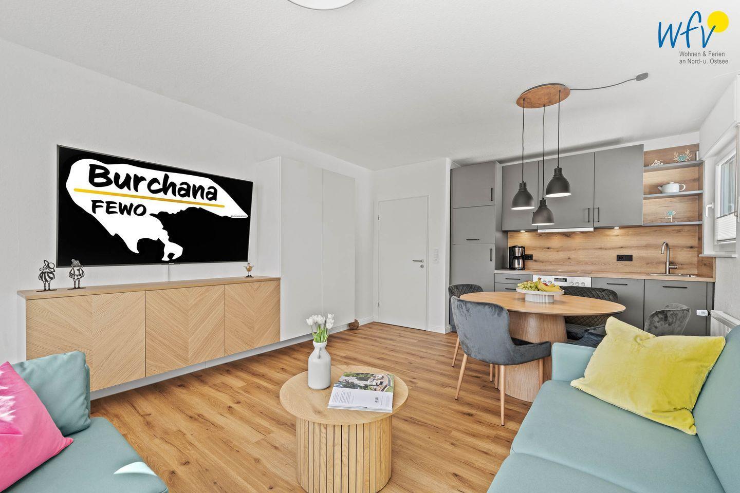 Sie träumen von herrlichen Ferien? Von Relaxzeiten und Erholung? Unsere komfortable "Ferienwohnung Burchana" erstrahlt seit Frühjahr 2025 in neuem Glanz und lädt zu traumhaft entspannten Tagen auf Borkum ein. Hier können Sie sich mit zwei bis vier Personen rundum erholen!