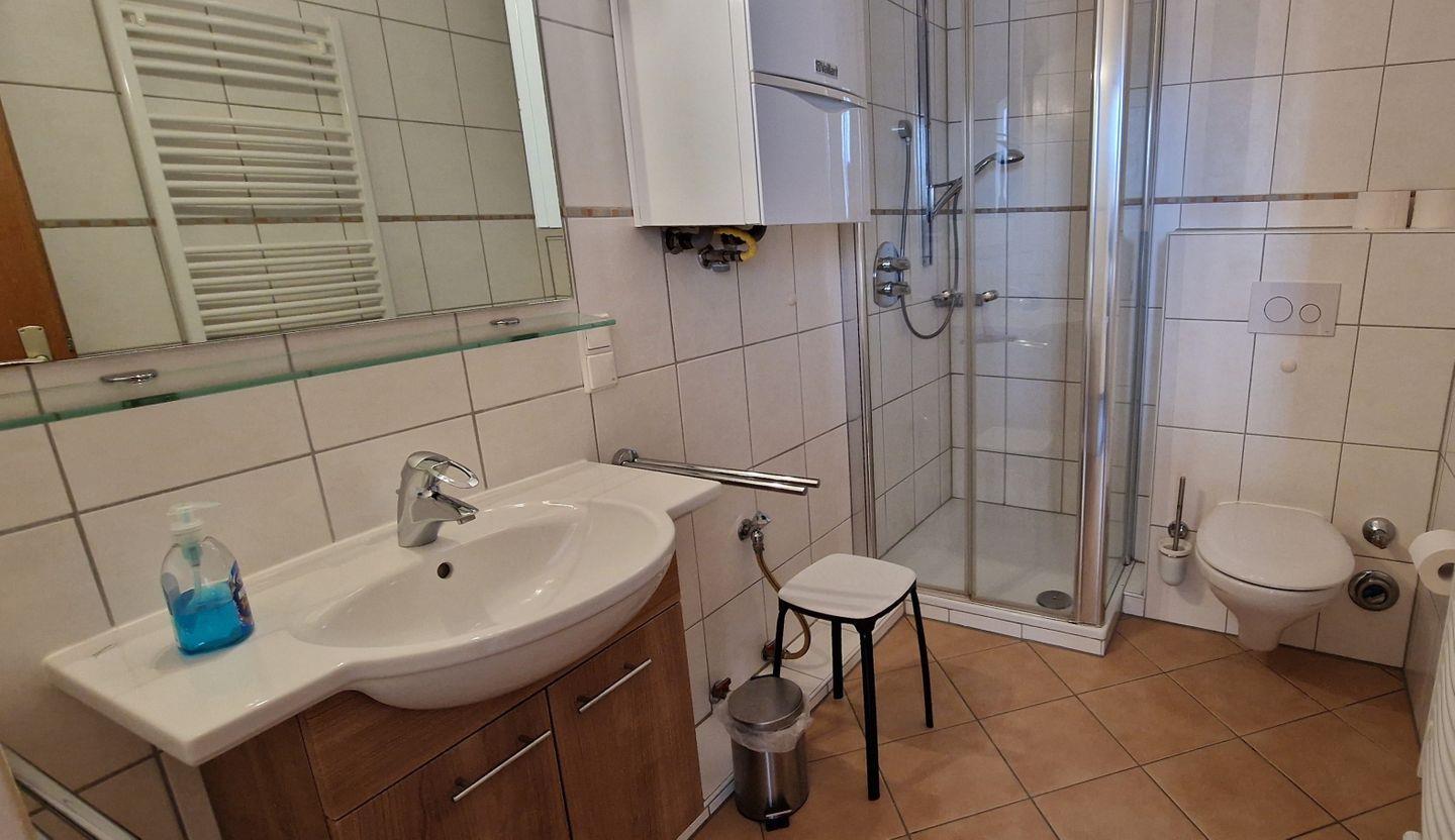 großer, gut ausgestatteter Küchenzeile, Schlafzimmer mit Doppelbett, Schlafcouch im Wohnraum, Parkplatz am Haus, gute Ausstattung