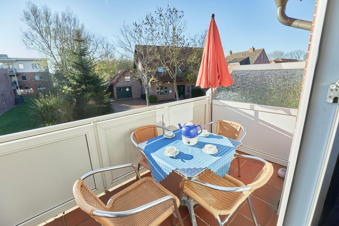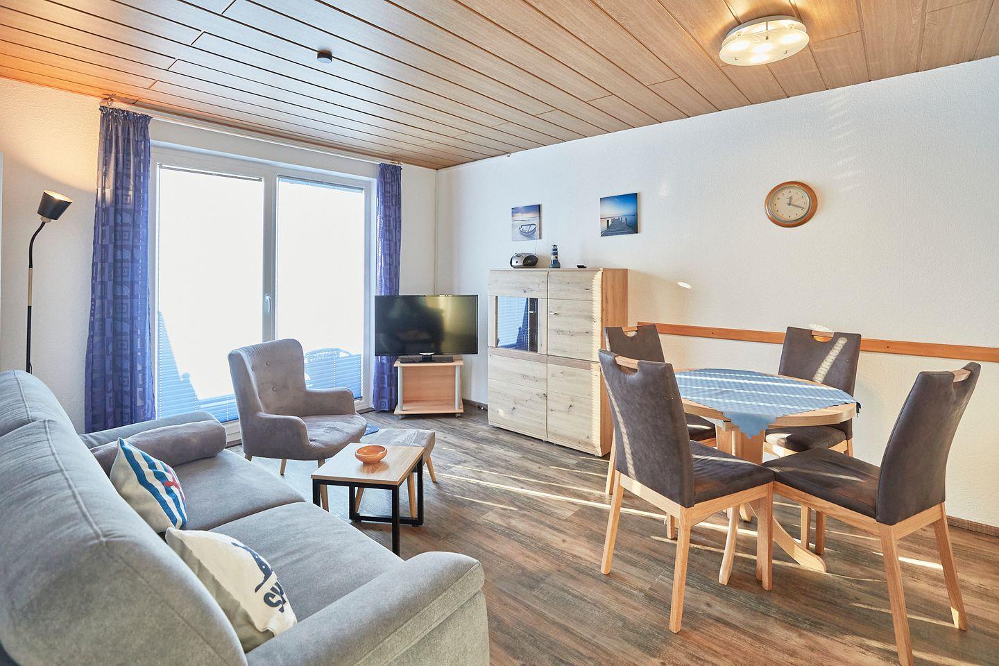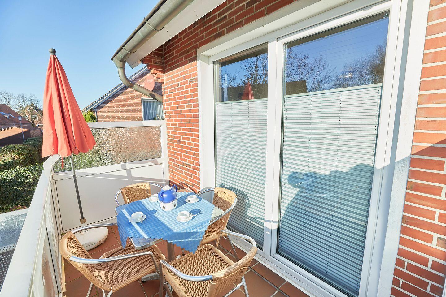 Ein Highlight der Ferienwohnung ist der großangelegte Balkon, auf dem Sie den Tag bei einem Glas Wein ausklingen lassen können. Genießen Sie die frische Nordseeluft. Der offene Wohnbereich mit Sofa, Essbereich und TV sorgt für ein angenehmes Ambiente, perfekt für gesellige Abende mit der Familie oder romantische Abende zu zweit. Die Küche ist mit allem ausgestattet, was Sie für die Zubereitung von leckeren Urlaubsmahlzeiten benötigen, darunter ein Herd, Backofen, Kühlschrank und Geschirrspüler – alles, was das Kochherz begehrt.