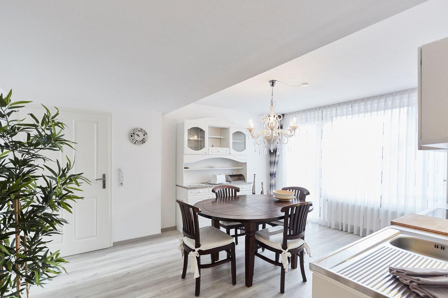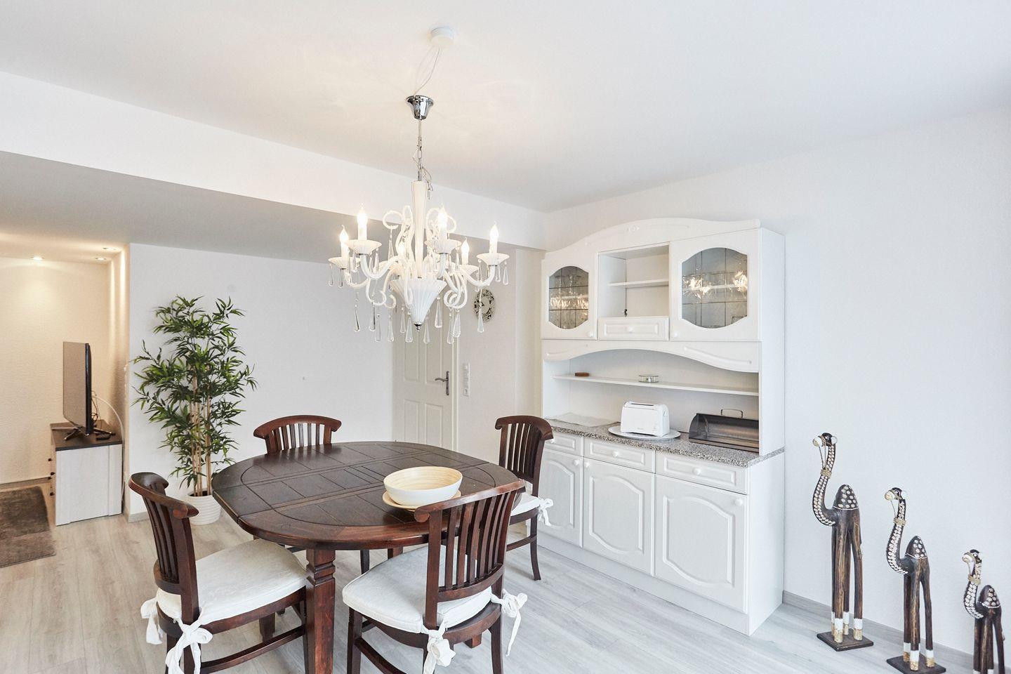 Der großzügige Wohnbereich lädt mit seinem Laminatboden und dem bequemen Sofa zum Verweilen ein. Hier können Sie entspannen, einen schönen Film ansehen oder einfach die Zeit mit Ihren Lieben genießen. Über WLAN bleiben Sie zudem immer bestens vernetzt und können Ihre Erlebnisse direkt mit Freunden und Familie teilen.