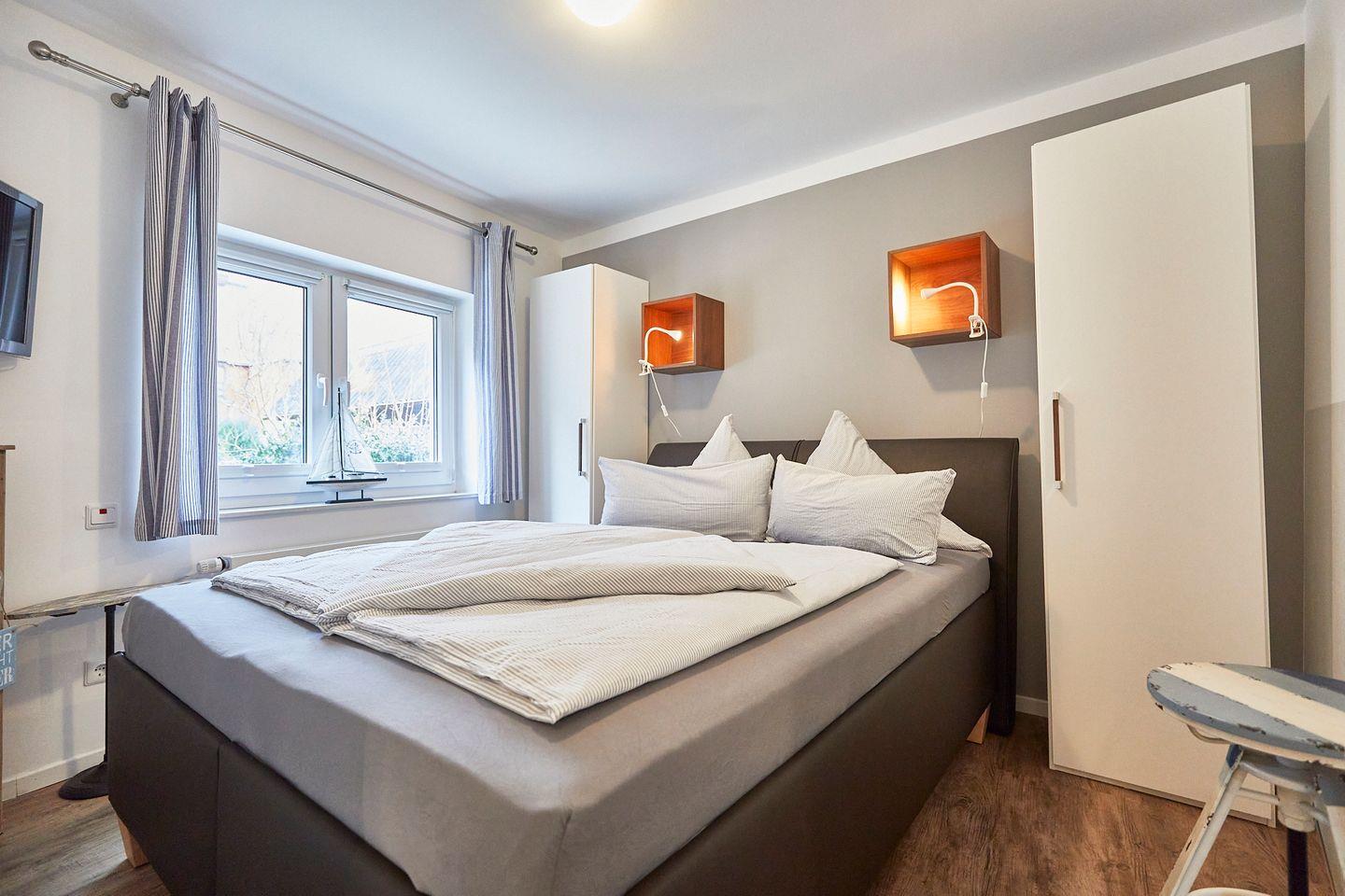 Das Schlafzimmer ist mit einem komfortablen Laminatboden ausgestattet und bietet Ihnen einen ruhigen Rückzugsort für erholsame Nächte. Hier können Sie Ihr wohlverdientes Süßholz genießen und den Klang der Wellen vor der Küste hören. Allergikerfreundliche Materialien tragen dazu bei, dass sich niemand unwohl fühlen muss.