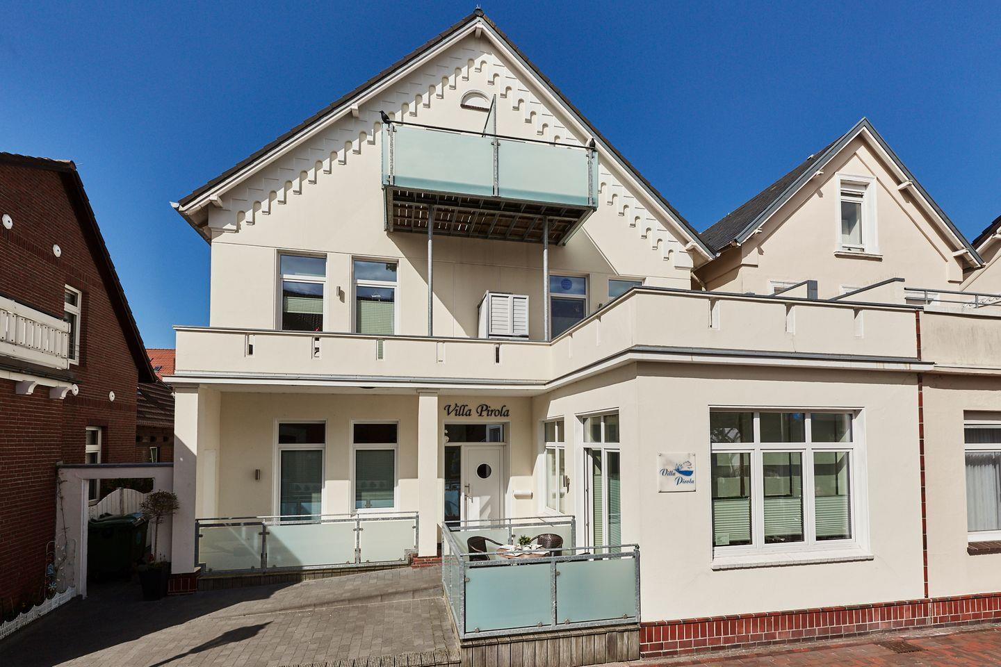 Willkommen in der Villa Pirola - Ferienwohnung 4, Ihrem perfekten Rückzugsort auf der bezaubernden Insel Borkum! Diese moderne und geräumige Ferienwohnung mit 55 m² ist ideal für Familien oder Gruppen von bis zu vier Personen und bietet alles, was Sie für einen erholsamen Urlaub benötigen.