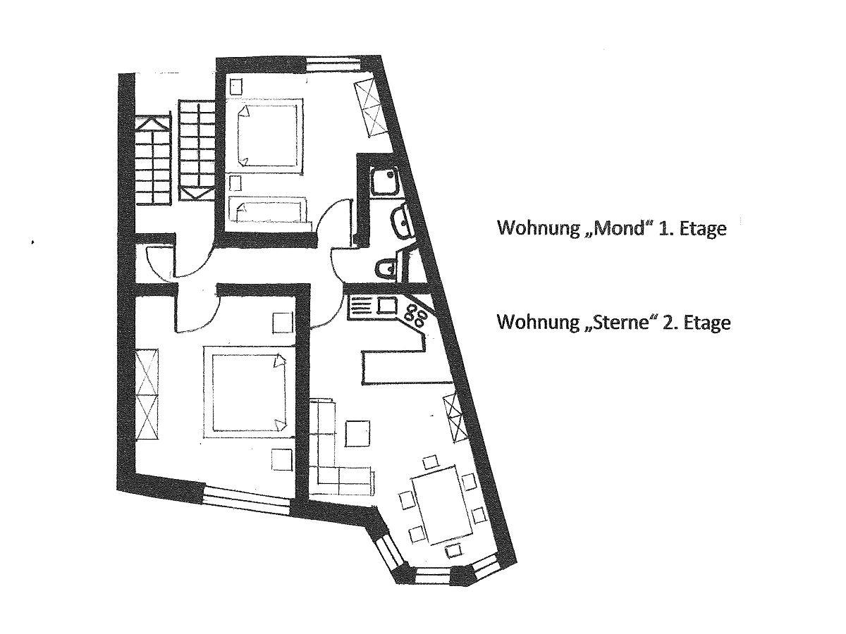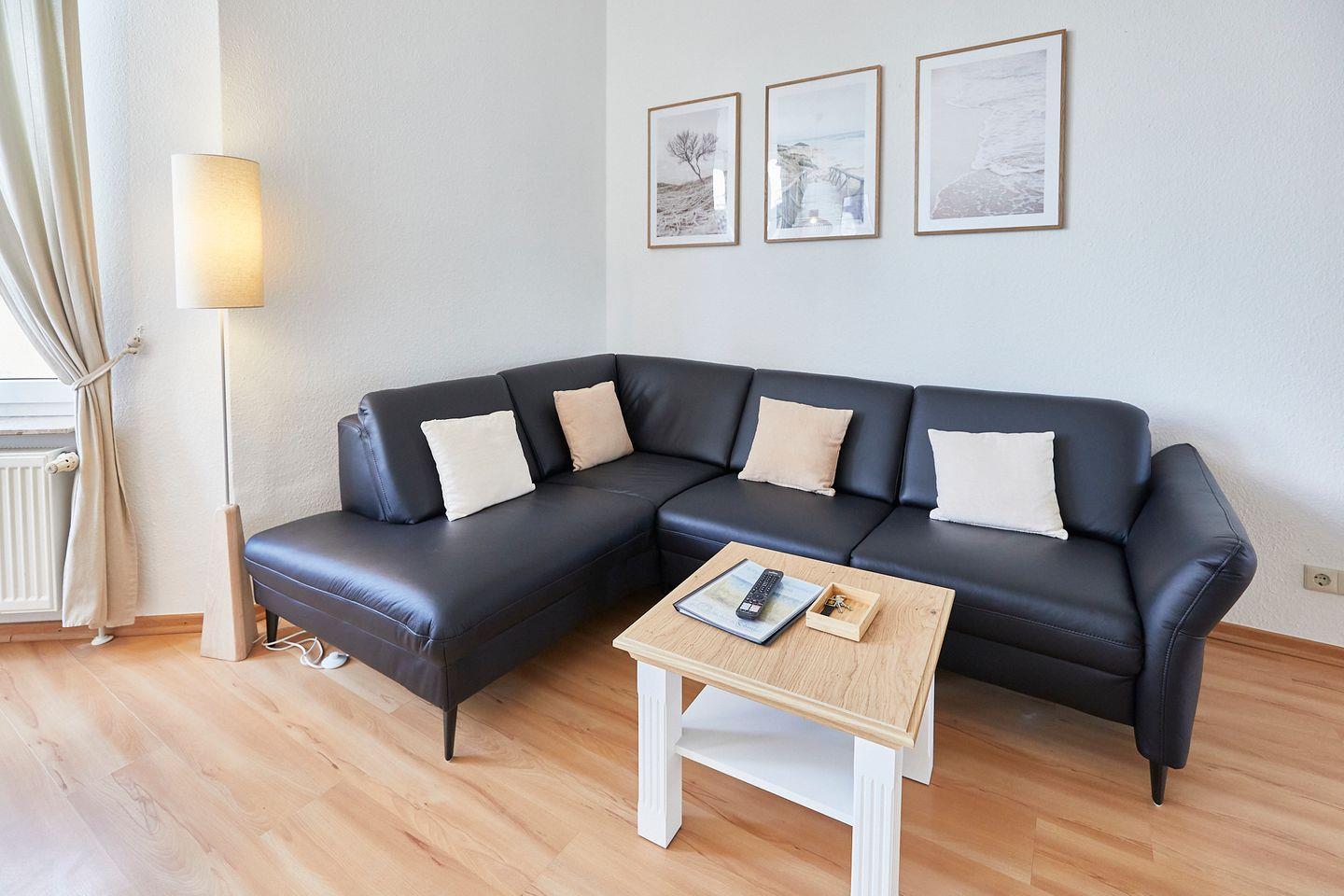 Die Ferienwohnung verfügt über zwei gemütliche Schlafzimmer, die durch ihren modernen Laminatboden und liebevolle Dekoration bestechen. Das geräumige Wohnzimmer lädt mit einer Sofaecke und einem Essbereich zu geselligen Abenden ein. Hier können Sie nach einem erlebnisreichen Tag die Füße hochlegen, einen Film auf dem digitalen TV genießen oder ein gutes Buch aus der hauseigenen Bibliothek lesen. Das lichtdurchflutete Ambiente sorgt für ein Wohlfühlklima, in dem Sie sofort entspannen können.
