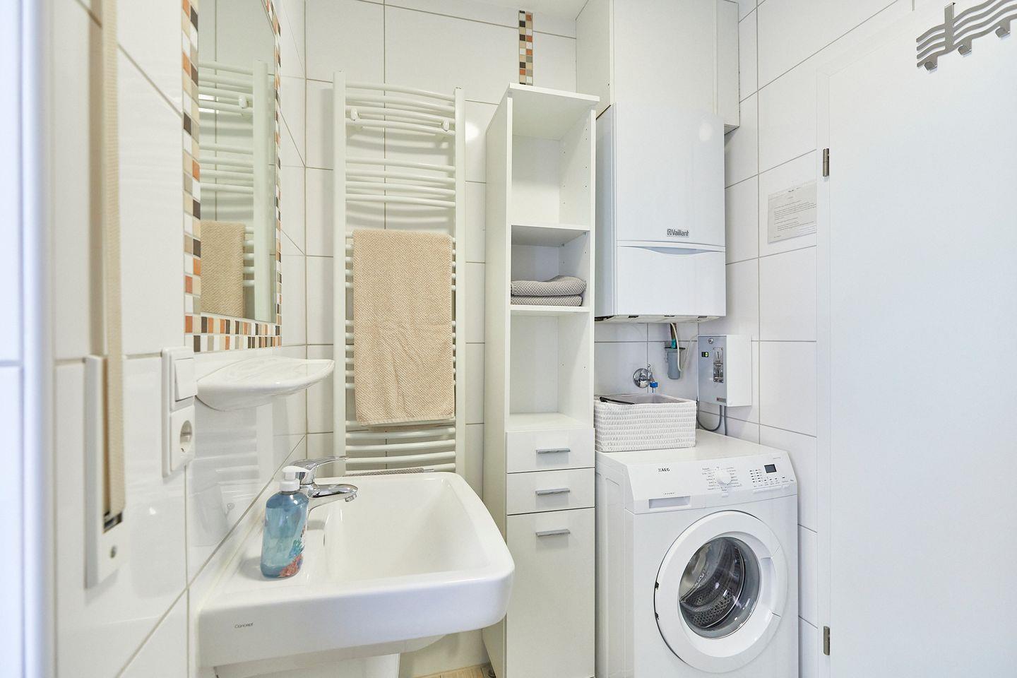 Die beiden komfortablen Schlafzimmer sind mit modernem Laminatboden ausgelegt und bieten eine ruhige Oase zum Entspannen. Die herrliche Terrasse ist bei sonnigem Wetter der perfekte Ort, um die frische Meeresluft zu genießen oder den Abend mit einem Glas Wein ausklingen zu lassen. Auch eine eigene Waschmaschine und WLAN sind vorhanden, damit Sie sich wie zu Hause fühlen können.