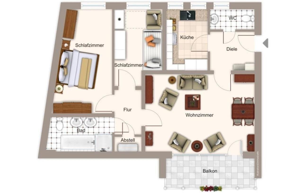 Mit zwei Schlafzimmern, moderner Küche und kleinem Gästebad lädt die Unterkunft auch zu längeren Aufenthalten ein, dank komfortabler Ausstattung und der stilvollen Einrichtung werden Sie sich direkt wohlfühlen.