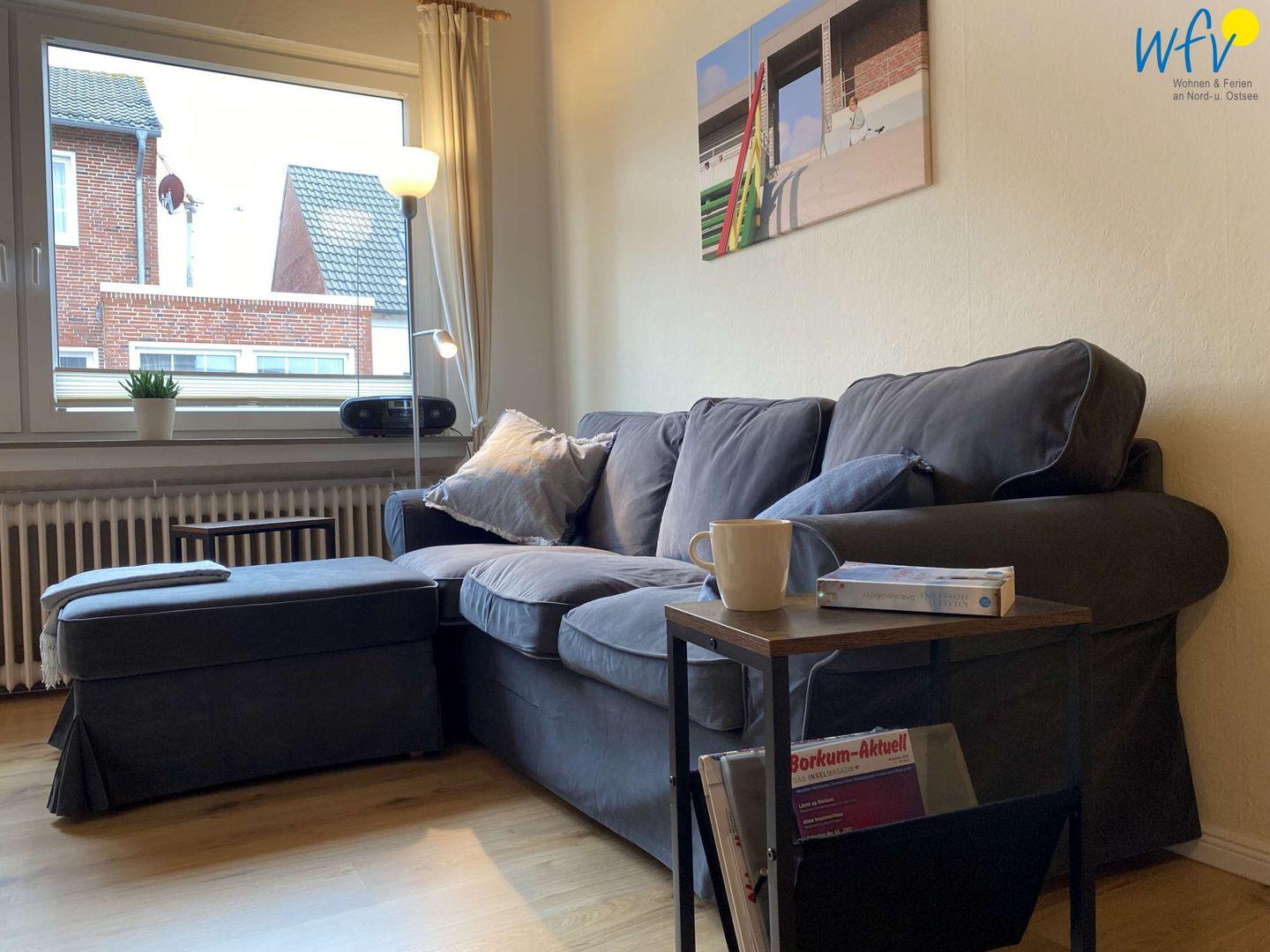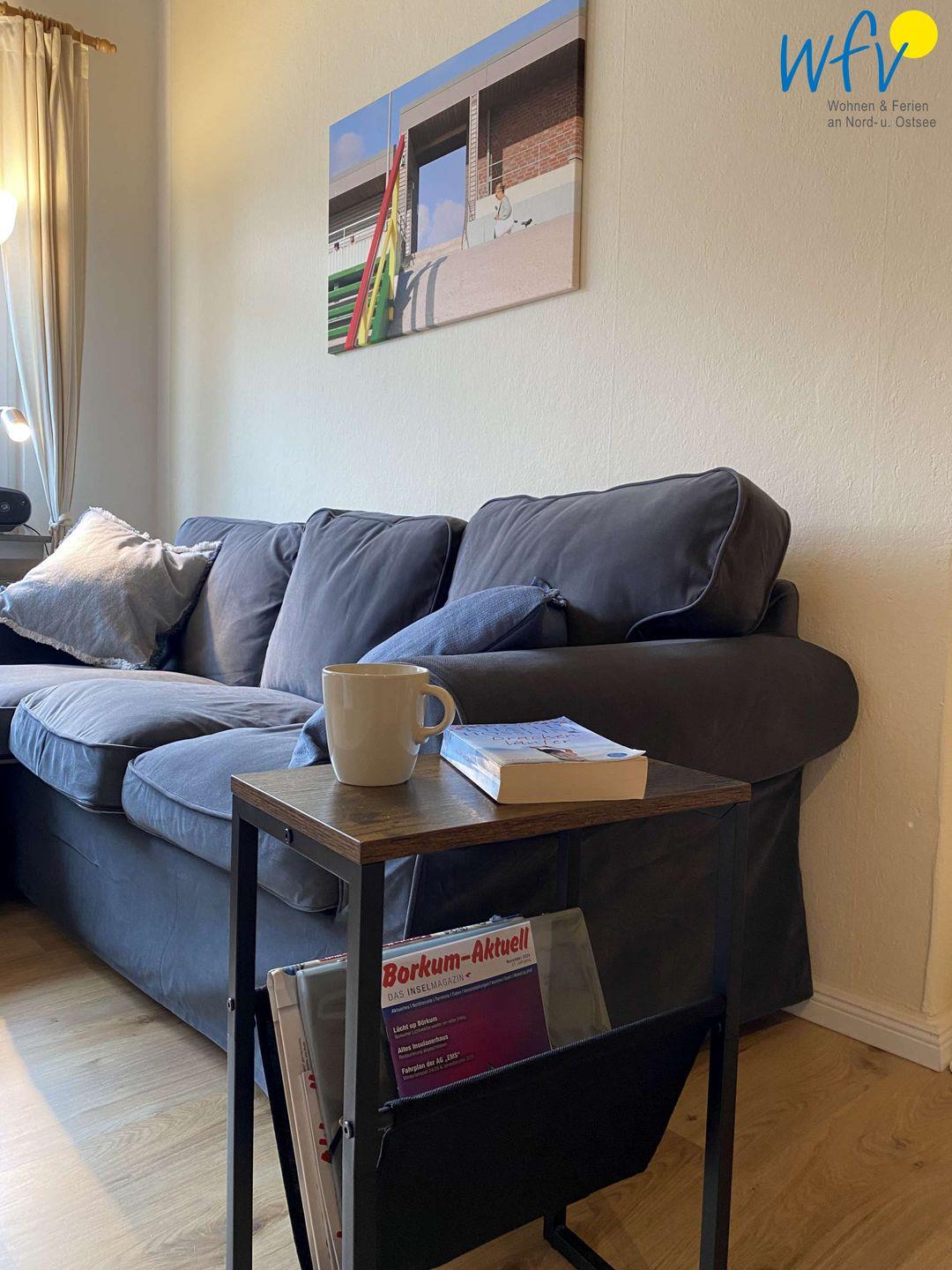 In dem gemütlichen Wohnbereich mit Couchecke, Smart-TV und CD-Player lassen sich entspannte Stunden verbringen. Hier können Sie nach der Fahrradtour oder dem Strandtag gute Filme schauen oder in Ruhe Musik hören.