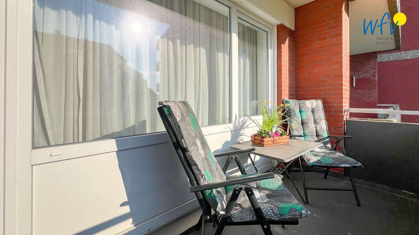 Herrliche Stunden an der frischen Nordseeluft buchen Sie in unserer Ferienwohnung inklusive: Auf dem möblierten Balkon können Sie nach Herzenslust entspannen und die Seele baumeln lassen. Ein wunderbares Urlaubsgefühl!