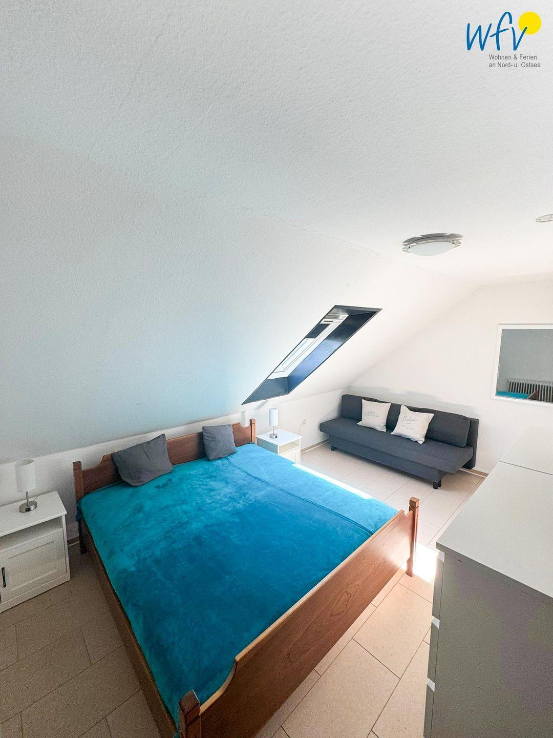 Die zwei separaten Schlafzimmer im DG bieten Ihnen angenehme Rückzugsmöglichkeiten. Das Elternschlafzimmer ist mit einem Doppelbett und einem Sofa als weitere Schlafmöglichkeit ausgestattet, das Kinderzimmer mit zwei Einzelbetten. Die Matratzen besitzen die Maße 90 x 200 cm.