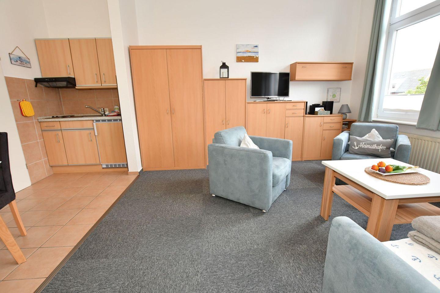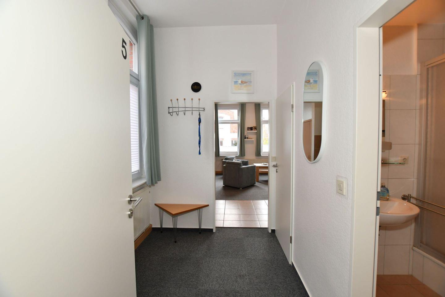 Hübsche Stadtwohnung in der ersten Etage für 4 Personen, sie verfügt über ein Wohnzimmer mit einer guten Schlafcouch und einer kleinen Küchenzeile, ein Schlafzimmer mit zwei Einzelbetten und ein Bad mit Dusche und WC. Gemütlich, hell und freundlich eingerichtet, lichtdurchflutet und modern sorgt sie durch ihre absolute Nähe zu allen wichtigen Einrichtungen für ein gutes Urlaubsgefühl. Ein privater Parkplatz und die Möglichkeit Wäsche zu waschen sind weitere Pluspunkte.