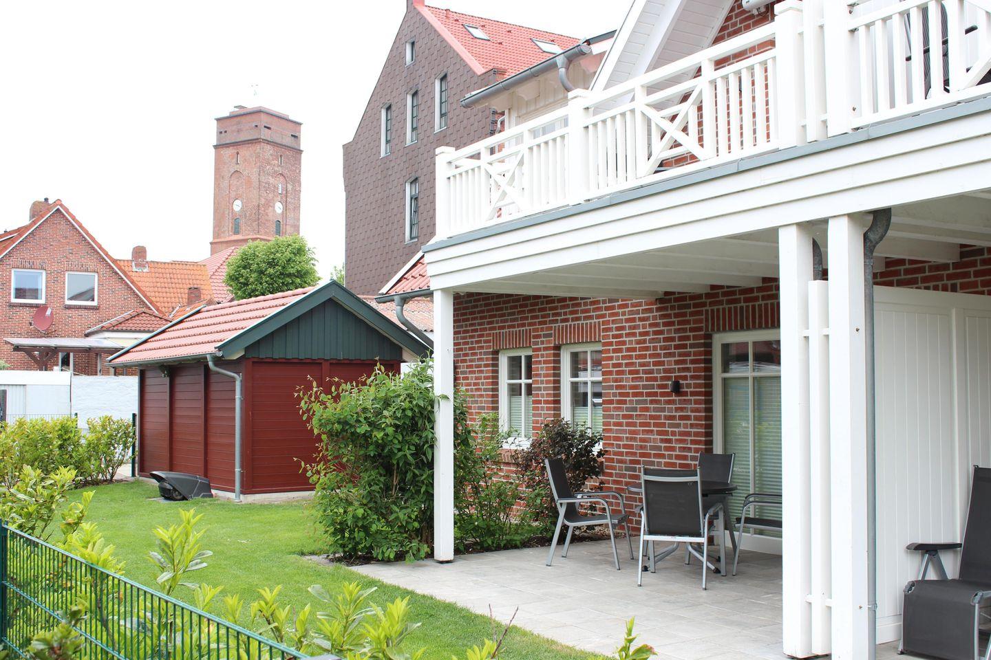 Die nach Süden ausgerichtete Sonnenterrasse lädt mit Gartenmöbeln und zwei komfortablen Relax-Liegen zu entspannten Sonnenstunden ein. Genießen Sie von hier aus einen wunderbaren Blick auf die bekannten Borkumer Leuchttürme. Für Ausflüge an den Strand steht Ihnen während der Saison ein eigener Strandkorb am Hauptstrand zur Verfügung.