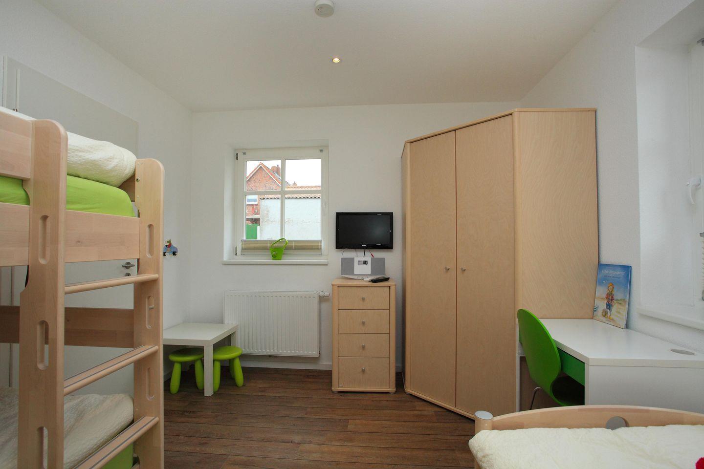 Die Wohnung bietet zwei liebevoll eingerichtete Schlafzimmer: Ein geräumiges Elternschlafzimmer mit komfortablem Doppelbett, Flachbild-TV und eigenem Badezimmer mit bodengleicher Dusche, WC, Haarfön und angenehmer Fußbodenerwärmung. Das Kinderzimmer überzeugt durch praktische Einrichtung mit Einzelbett, Hochbett, Schreibtisch, Flachbild-TV, DVD-Player sowie einer iPod-kompatiblen Musikanlage.