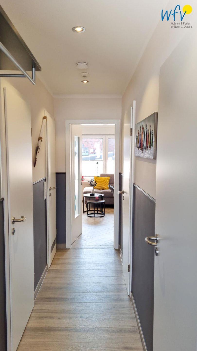 Die Ferienwohnung bietet Ihnen mit einem gemütlichen Wohnraum und zwei separaten Schlafzimmern sowie Küche, Duschbad, Flur mit Garderobe und Balkon Platz für bis zu 3 Personen (ggf. mit Kleinkind). Es erwarten Sie helle und liebevoll eingerichtete Räume - ideal, um sich im Urlaub rundum wohlzufühlen. Maritime Accessoires sorgen für das entsprechende Nordseeflair; eine Fußbodenheizung garantiert an kühleren Tagen wohlige Wärme.