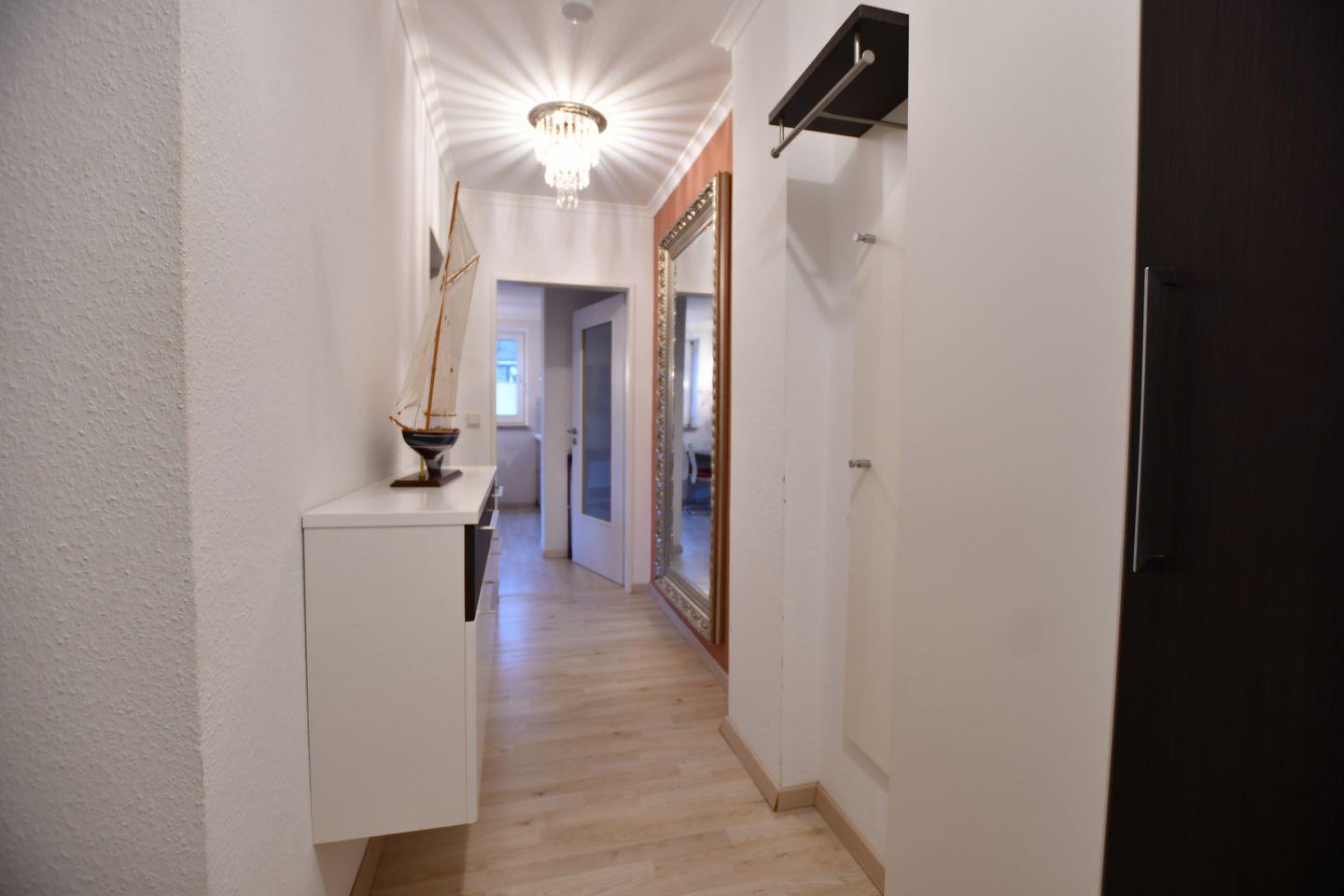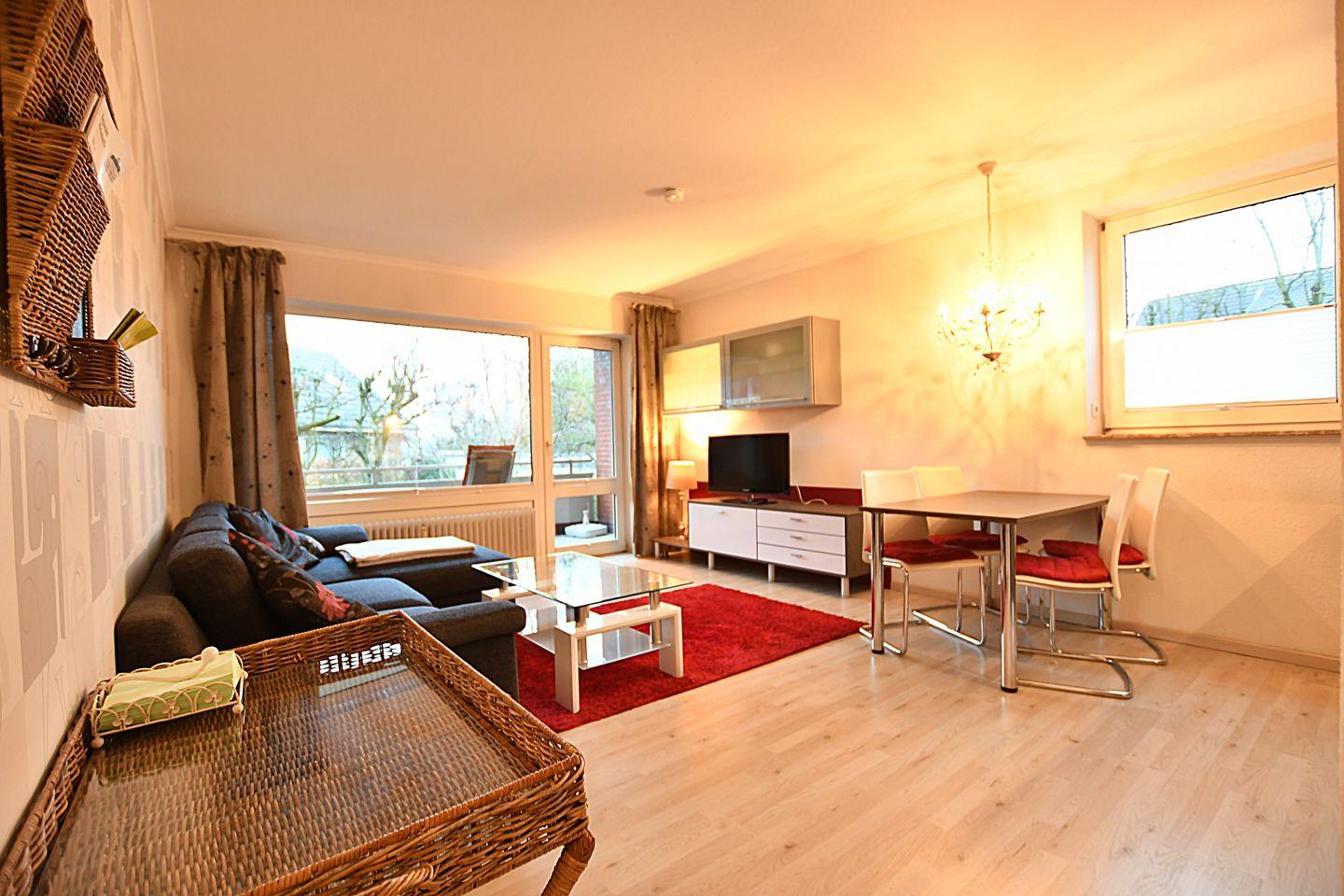 In der 44 qm großen, gemütlich und freundlich eingerichteten Ferienwohnung finden Sie ein Schlafzimmer mit Doppelbett und eigenem Flach-TV, ein großzügiges Wohnzimmer mit Küchenzeile, Essplatz und Balkon und ein Bad mit Dusche und WC. Die Küche ist mit Spülmaschine, Mikrowellen-Backofenkombination, Kühlschrank mit Tiefkühlfach und allen weiteren wichtigen Küchengeräten ausgestattet. Auf dem Balkon lässt es sich nach einem erlebnisreichen Urlaubstag herrlich entspannen. Bringen Sie gerne Ihren kleinen (bis Kniehöhe) Hund mit, hier ist es erlaubt. W-Lan steht Ihnen hier zur Verfügung.