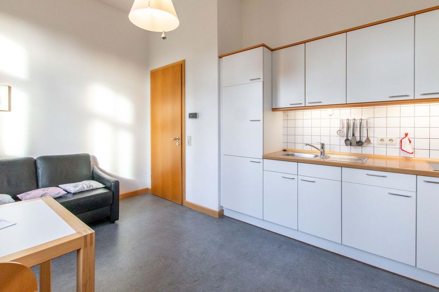 Alle Wohnungen in diesem Haus sind einfach, hell und funktional eingerichtet. Der Wohnraum dieser Wohnung beinhaltet eine gut ausgestattete Küchenzeile, einen Essplatz Das Schlafzimmer hat ein Doppelbett (160 x 200) mit offenem Bettende. Ein Bad mit Dusche (Wanne) und WC.