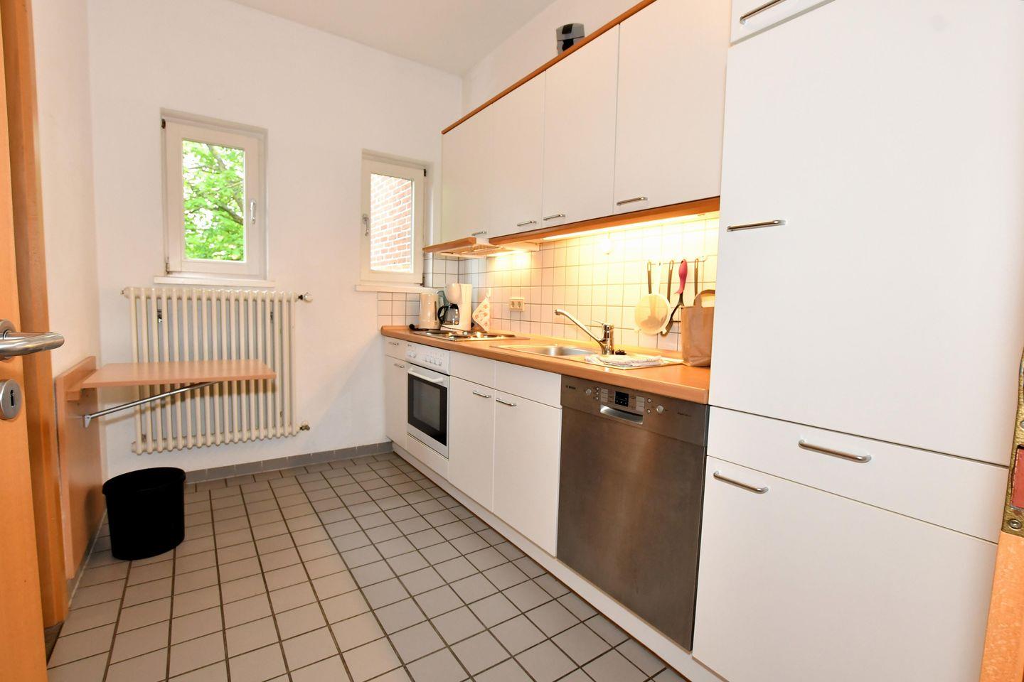 Küche mit 4-Platten- Herd, Backofen, Spülmaschine,