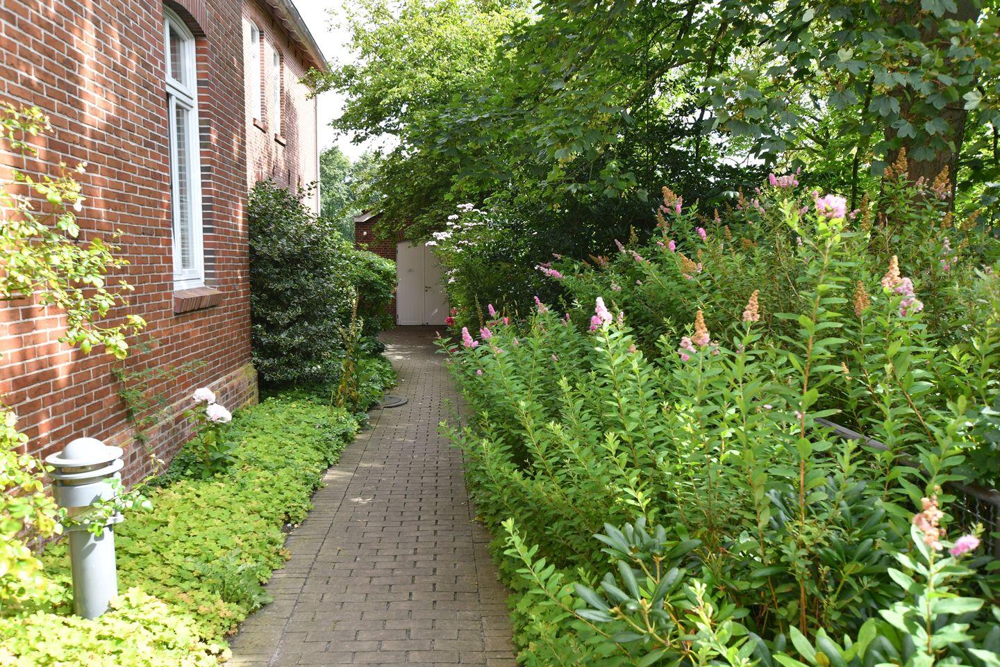 Ein großer Garten lädt zum Spielen, Sonnenbaden oder Grillen ein