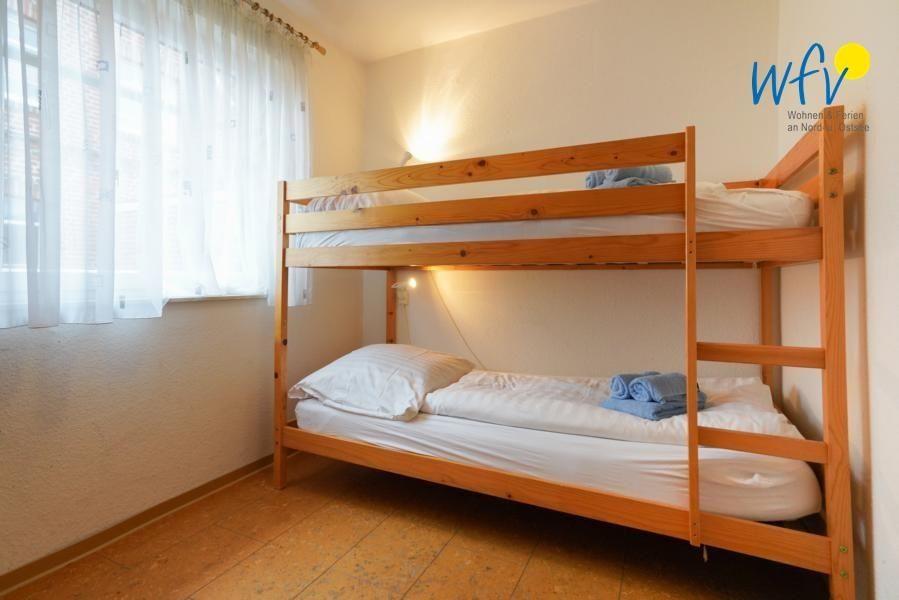 Die Ferienwohnung auf Borkumverfügt über zwei separate Schlafzimmer, die mit einem Doppelbett und einem Hochbett ausgestattet sind. Gerne können Sie über die WFV Bettwäsche bestellen (mehr dazu unter Reiseinfos).