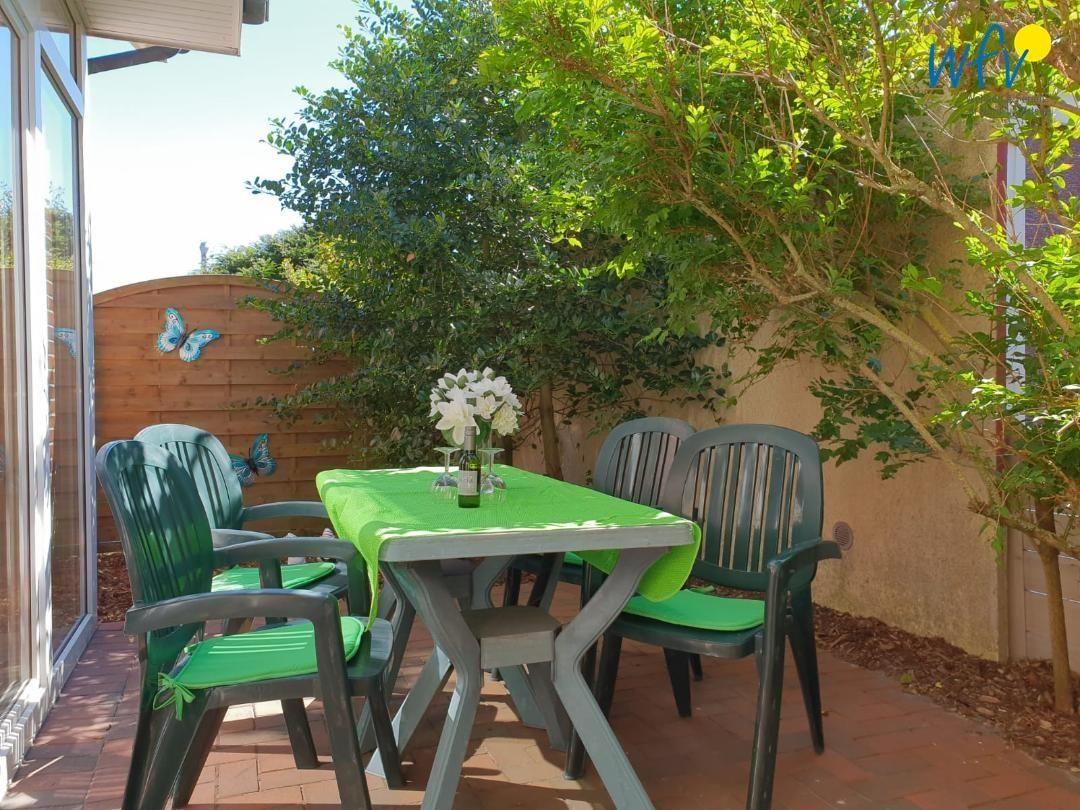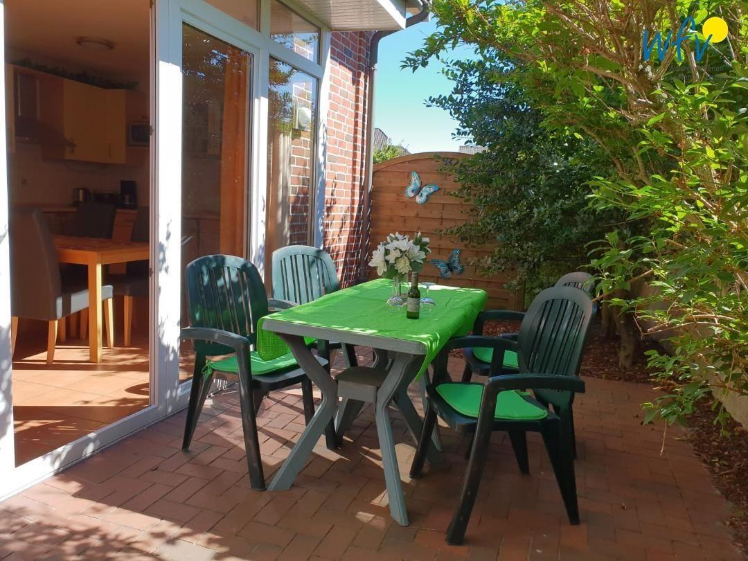 Vom Wohnraum aus gelangen Sie auf die sonnige Terrasse der Borkumer Ferienwohnung. An die Terrasse schließt sich ein Garten an, den Sie gerne mitbenutzen dürfen. Genau der richtige Ort, um ausgiebig zu relaxen und sich zu erholen!