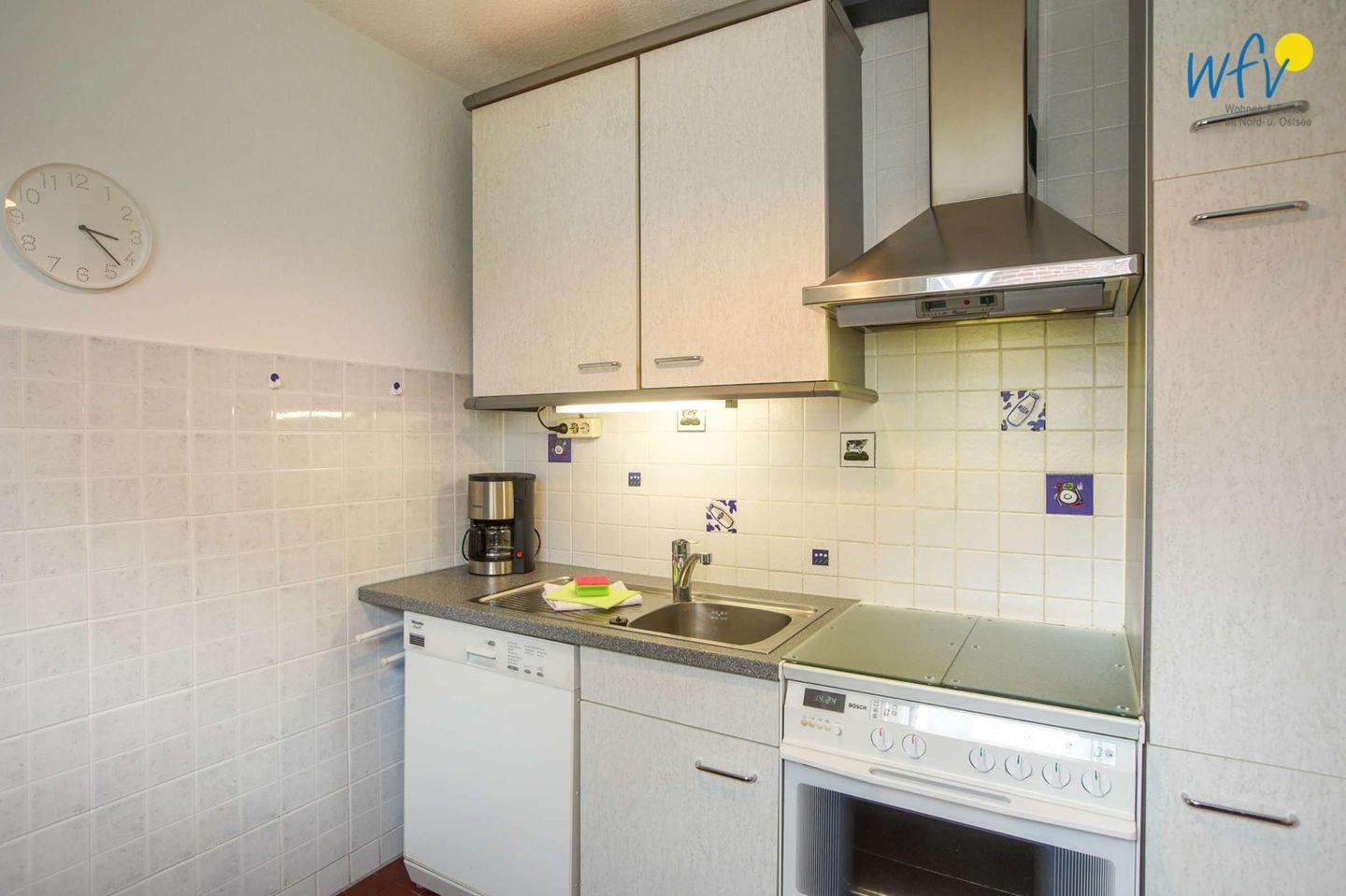 Im Untergeschoss befindet sich die separate Küche, welche mit modernen Haushaltsgeräten wie Cerankochherd mit Backofen, Spülmaschine, Mikrowelle, Kühlschrank mit Gefrierfach und Senseo- Kaffeemaschine etc. ausgestattet ist.