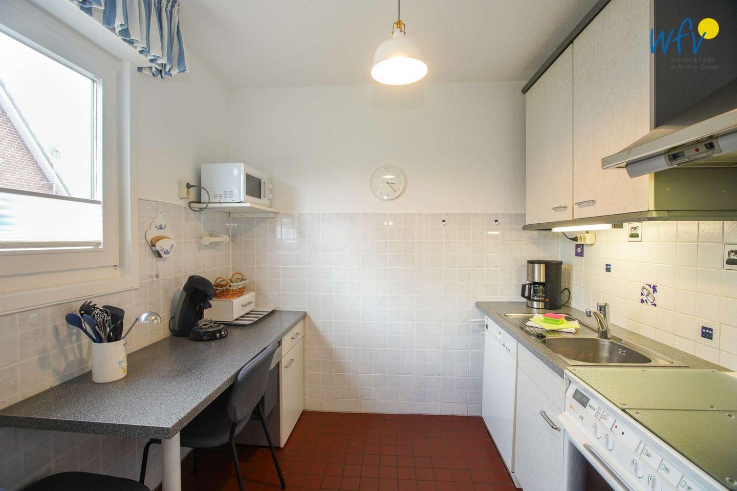 Die Borkumer Ferienwohnung ist besonders pflegeleicht. Das Untergeschoss wurde komplett gefliest; das gesamte Obergeschoss ist mit pflegeleichtem Laminat ausgelegt.