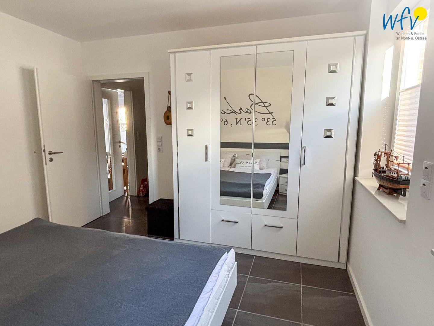 Herrlich ausschlafen können Sie in den zwei separaten Schlafzimmern der Borkumer Ferienwohnung. Sie sind jeweils mit einem bequemen Doppelbett ausgestattet.