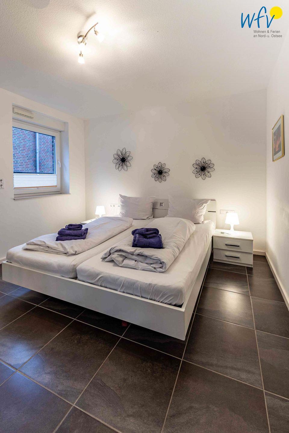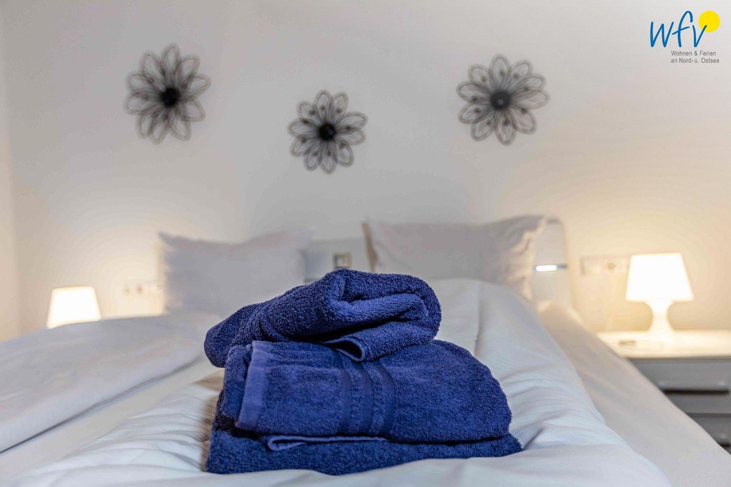 Herrlich ausschlafen können Sie in den zwei separaten Schlafzimmer der Borkumer Ferienwohnung. Sie sind jeweils mit einem bequemen Doppelbett ausgestattet.