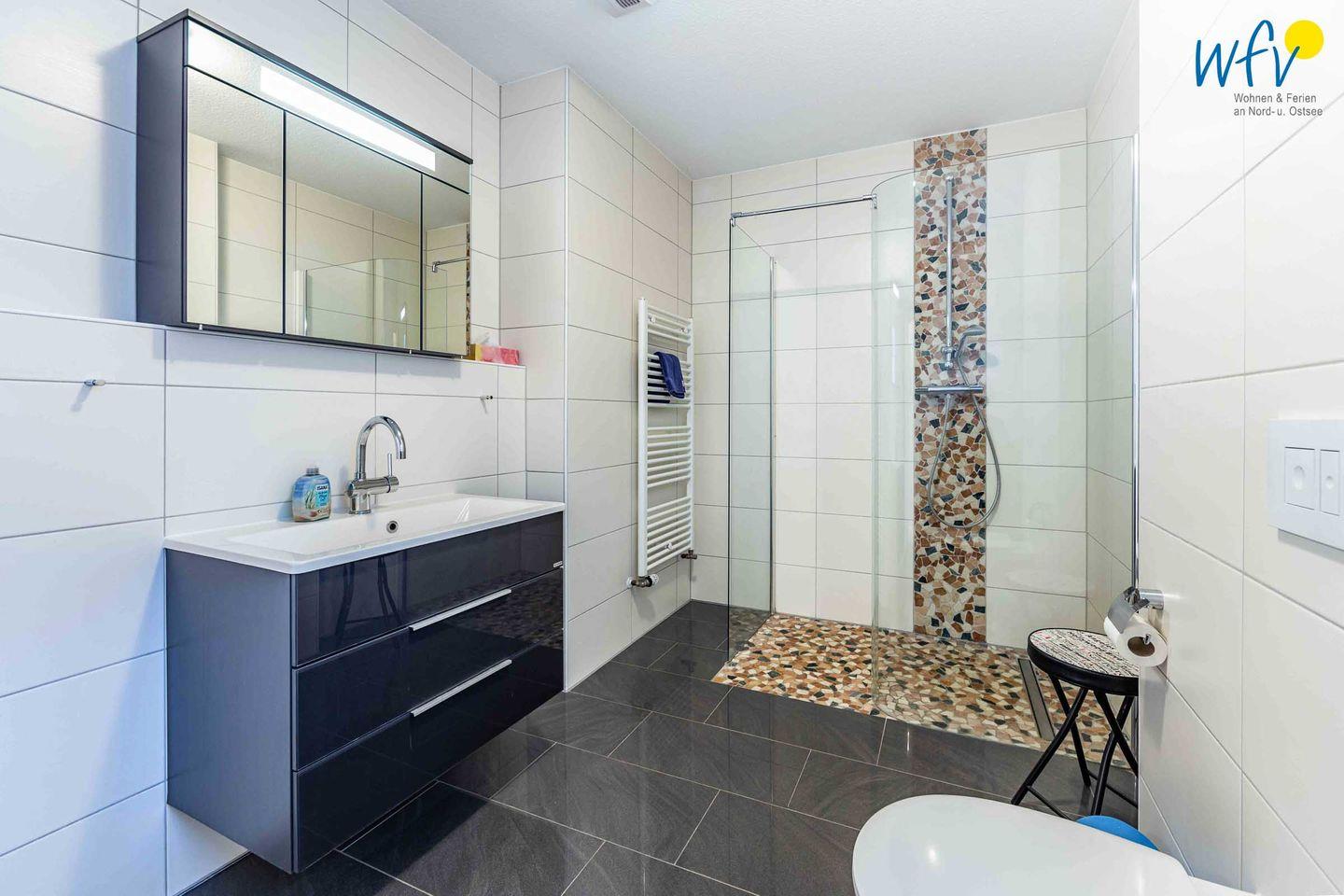 Großzügige 125 m² Wohnfläche, aufgeteilt über zwei Etagen (OG+DG), ermöglichen einen angenehmen Aufenthalt mit Ausweichmöglichkeiten. Die Ferienwohnung besitzt drei Bäder - jeweils mit Dusche und WC.