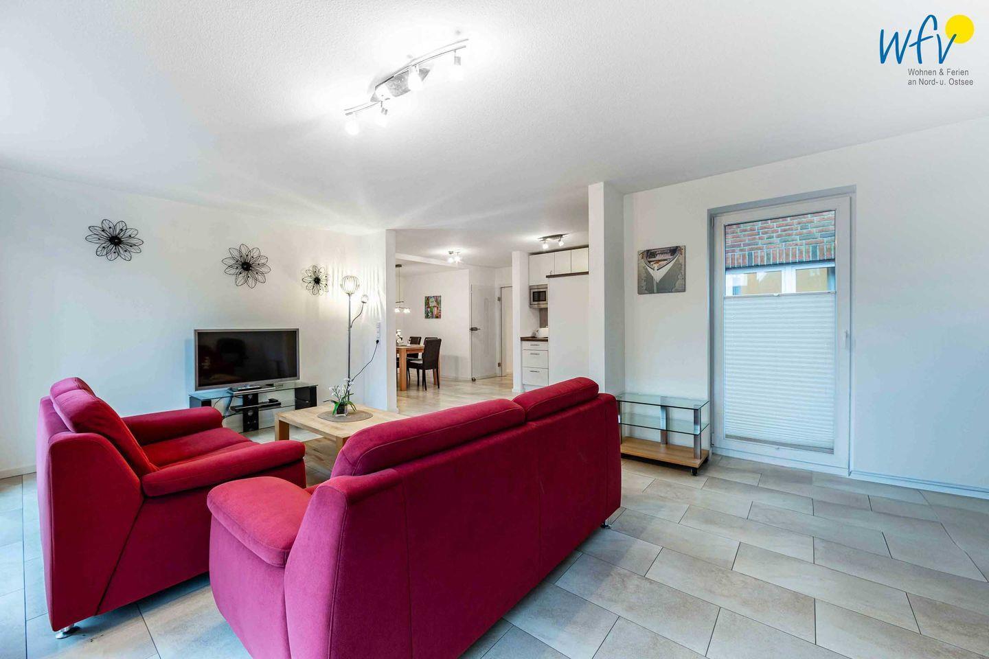 Für gemeinsame Stunden steht Ihnen in der Borkumer Ferienwohnung ein großer Wohn-Essbereich zur Verfügung. An dem komfortablen Esstisch können Sie wunderbar gemeinsame Mahlzeiten einnehmen oder Tischspiele spielen. Eine gemütliche Couchecke mit 3D-Fernseher, DVD-Player und Musikanlage lädt zu herrlich entspannten Abenden ein.