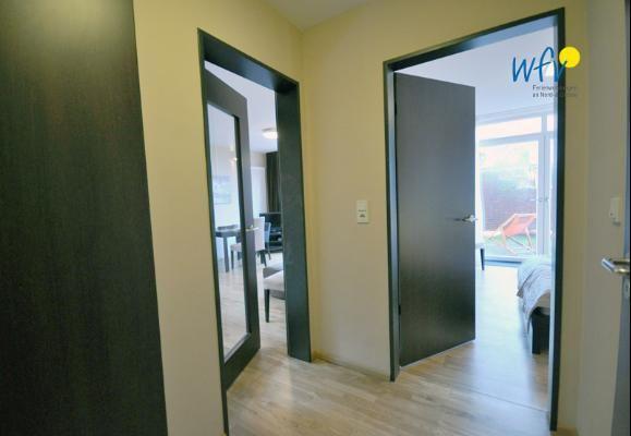 Das 49 m² große Apartment Nr.3 befindet sich im Erdgeschoss der "Barons Residenz" und verfügt über ein Schlafzimmer, ein Wohnzimmer mit integrierter Küche, einen Vorraum mit Garderobe sowie über eine Terrasse.