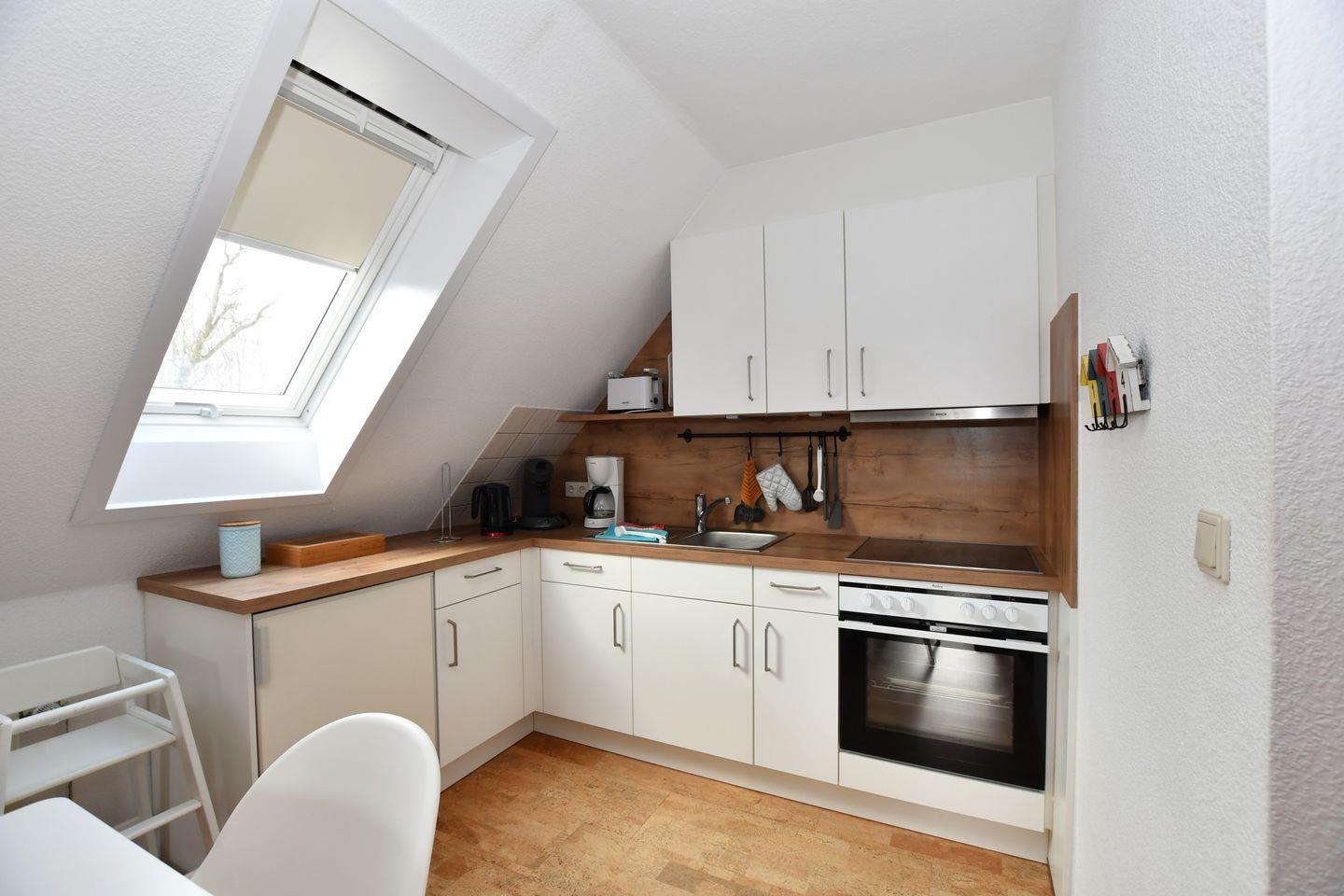 Schlafzimmer mit Doppelbett, Wohnzimmer mit gut ausgestattete Küchenzeile, 4-Platten-Herd, Mikrowelle, Kaffeemaschine, Senseo Kaffeepad-Maschine, Toaster, etc,