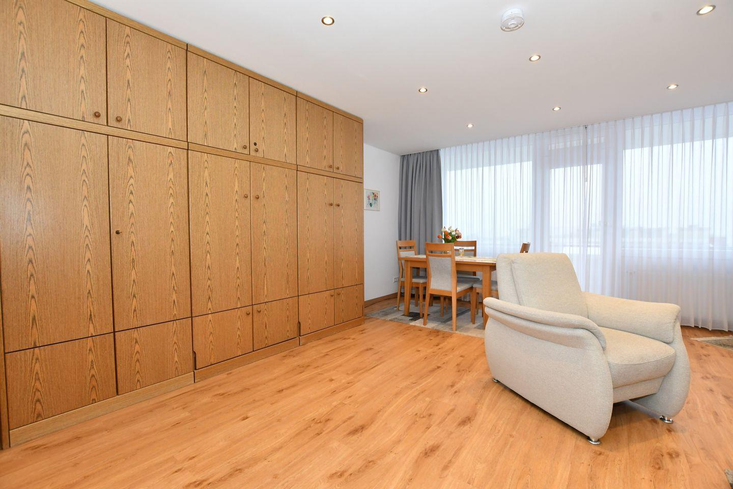 Genießen Sie Ruhe und den herrlichen Blick von Ihrem Balkon in der dritten Etage auf das Meer bis zum Eemshaven, das Gezeitenland und einen kleinen Teil Borkums. Der große freundlich helle Wohnraum hat eine Sitzecke mit Couchgarnitur, einen Essplatz direkt am Fenster und 2 Schrankbetten. Eine kleine Küche mit 4 Platten Herd , Kühlschrank, Mikrowelle, Kaffeemaschine, Toaster sowie ausreichend Geschirr schließt sich an den Wohnraum an. Das Bad mit Dusche und WC ist ebenso innenliegend. Die Belüftung erfolgt durch eine sehr gute zentrale Lüftungsanlage. Der große Südbalkon ist mit Tisch und Stühlen ausgestattet. Fahrstuhl im Haus!